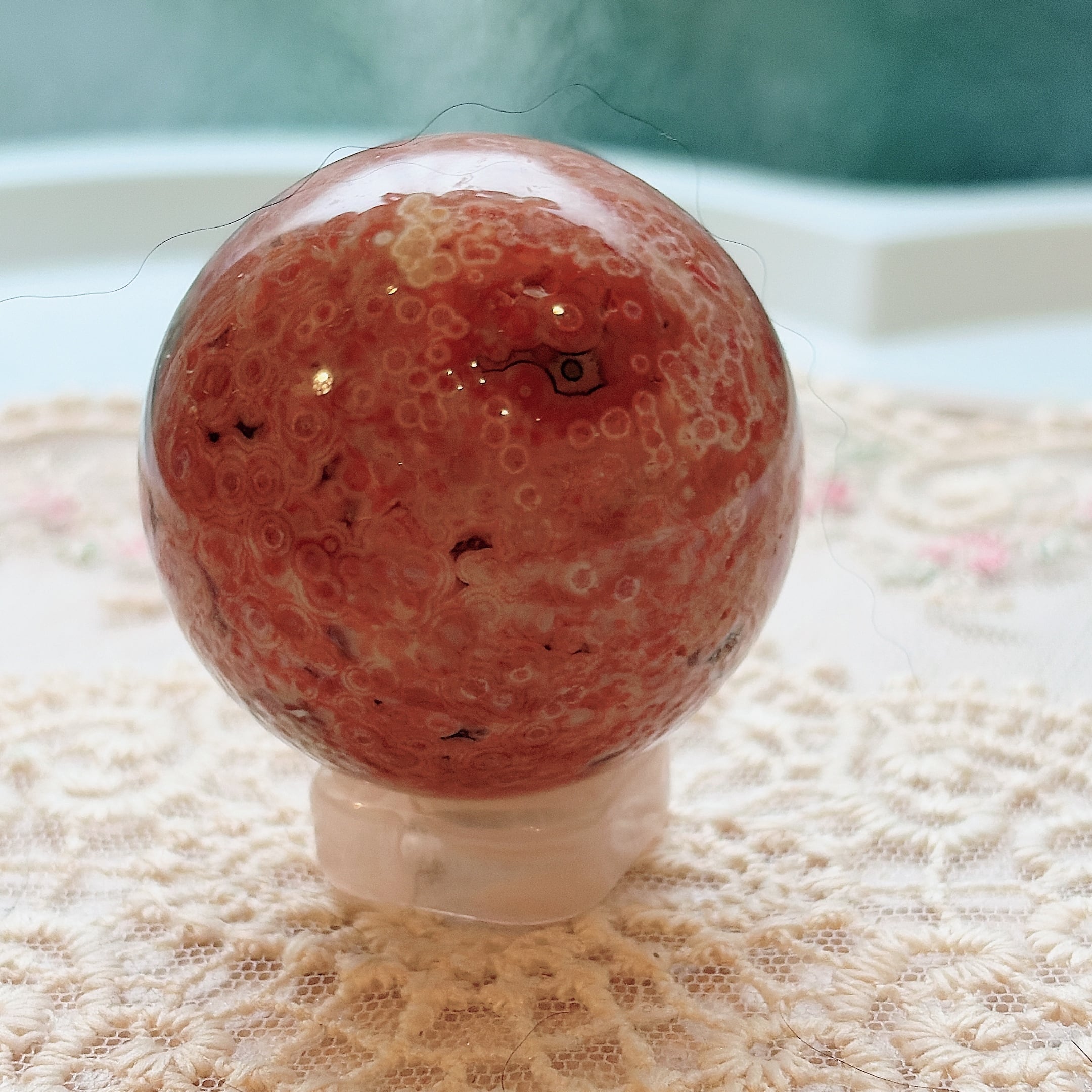 レア★オビキュラージャスパー★スフィア★オレンジ・ホワイト・グリーン