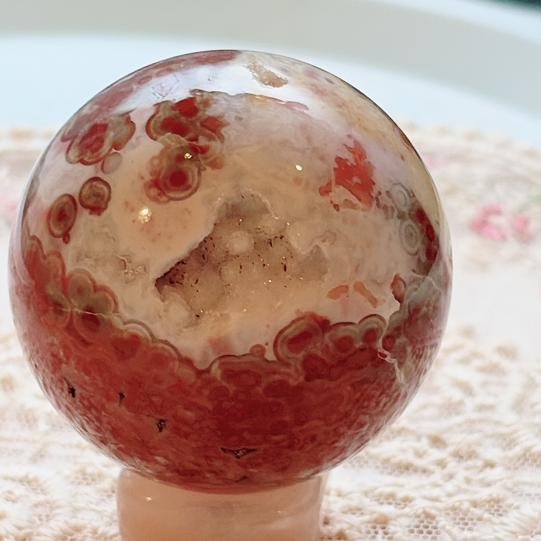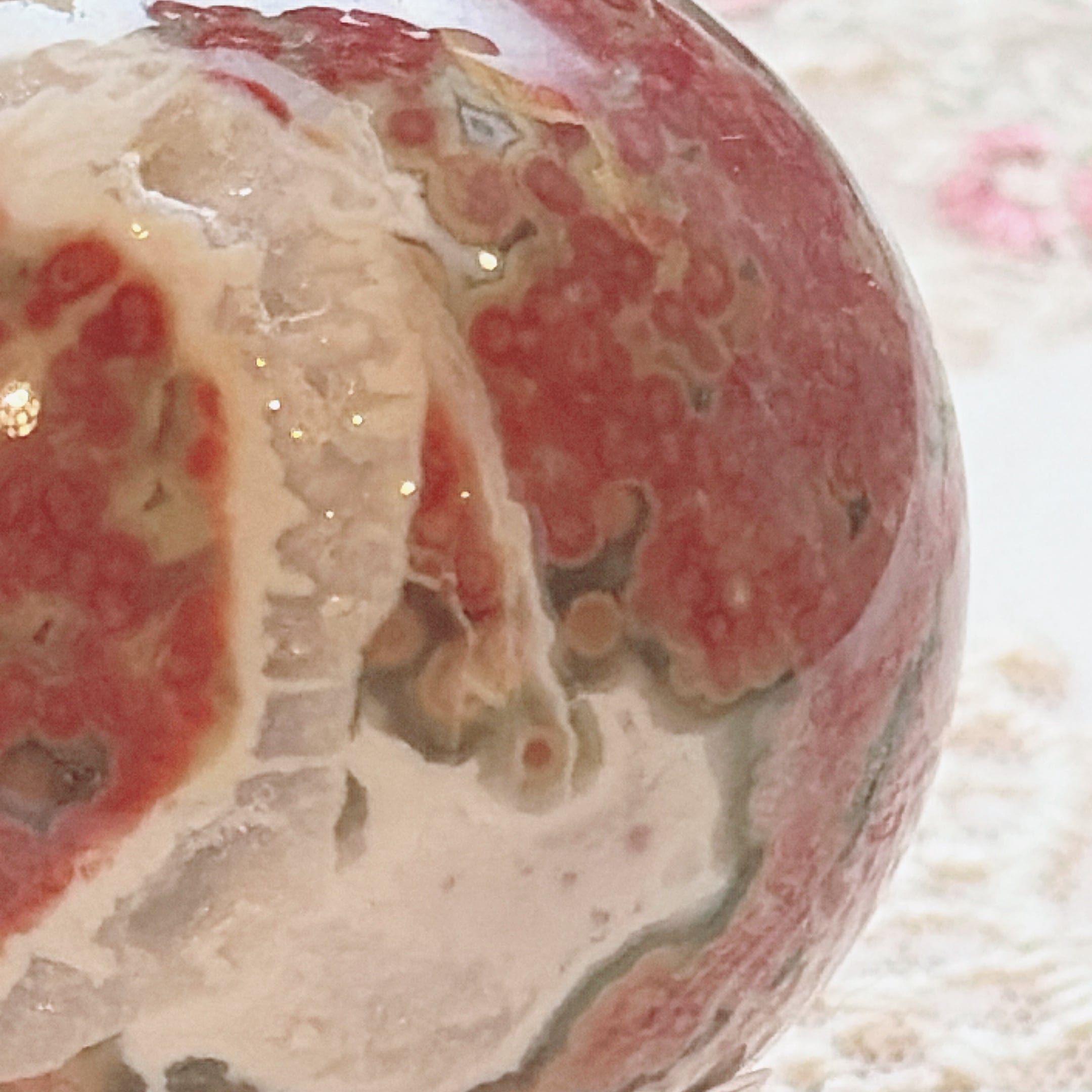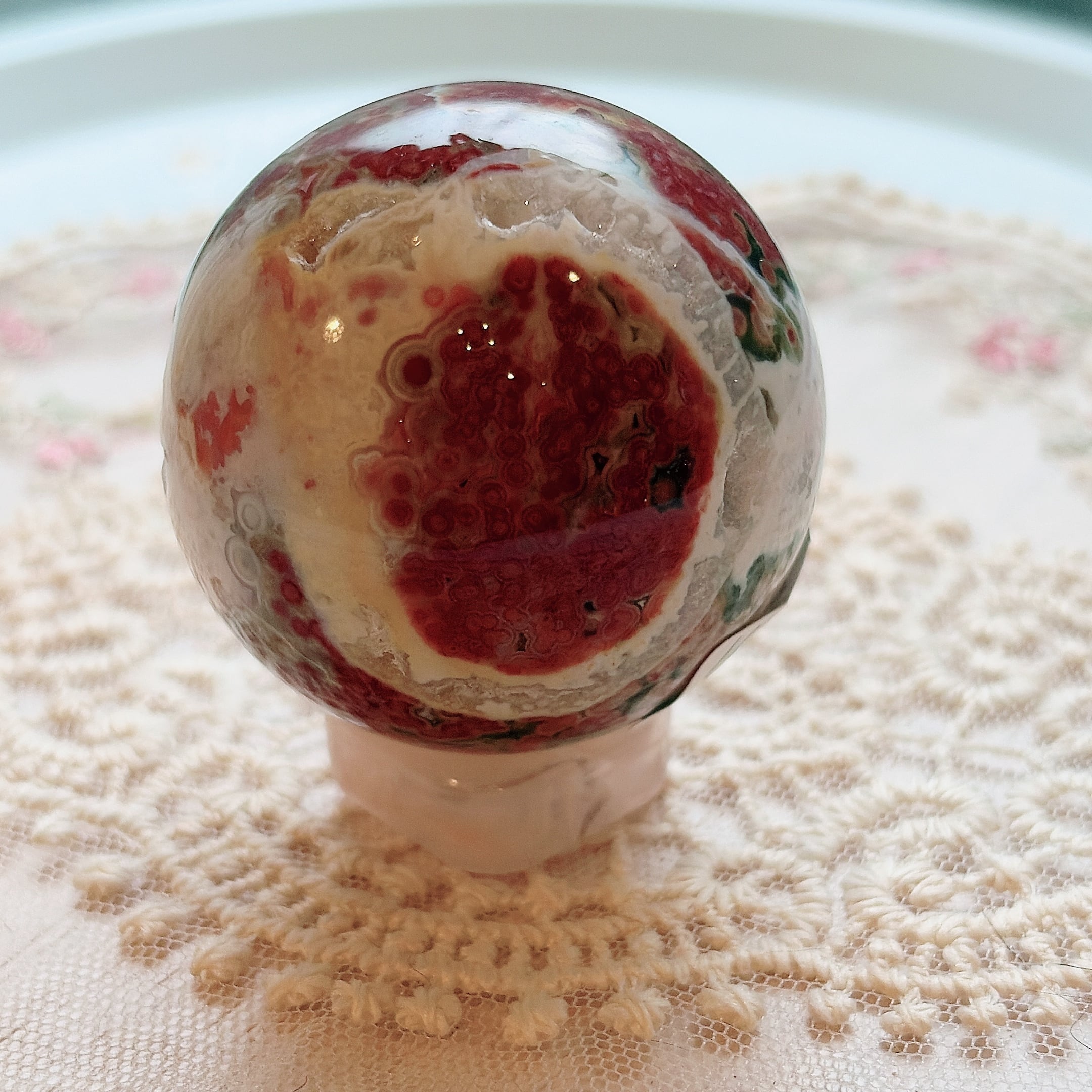 レア★オビキュラージャスパー★スフィア★ホワイト・オレンジ・グリーン