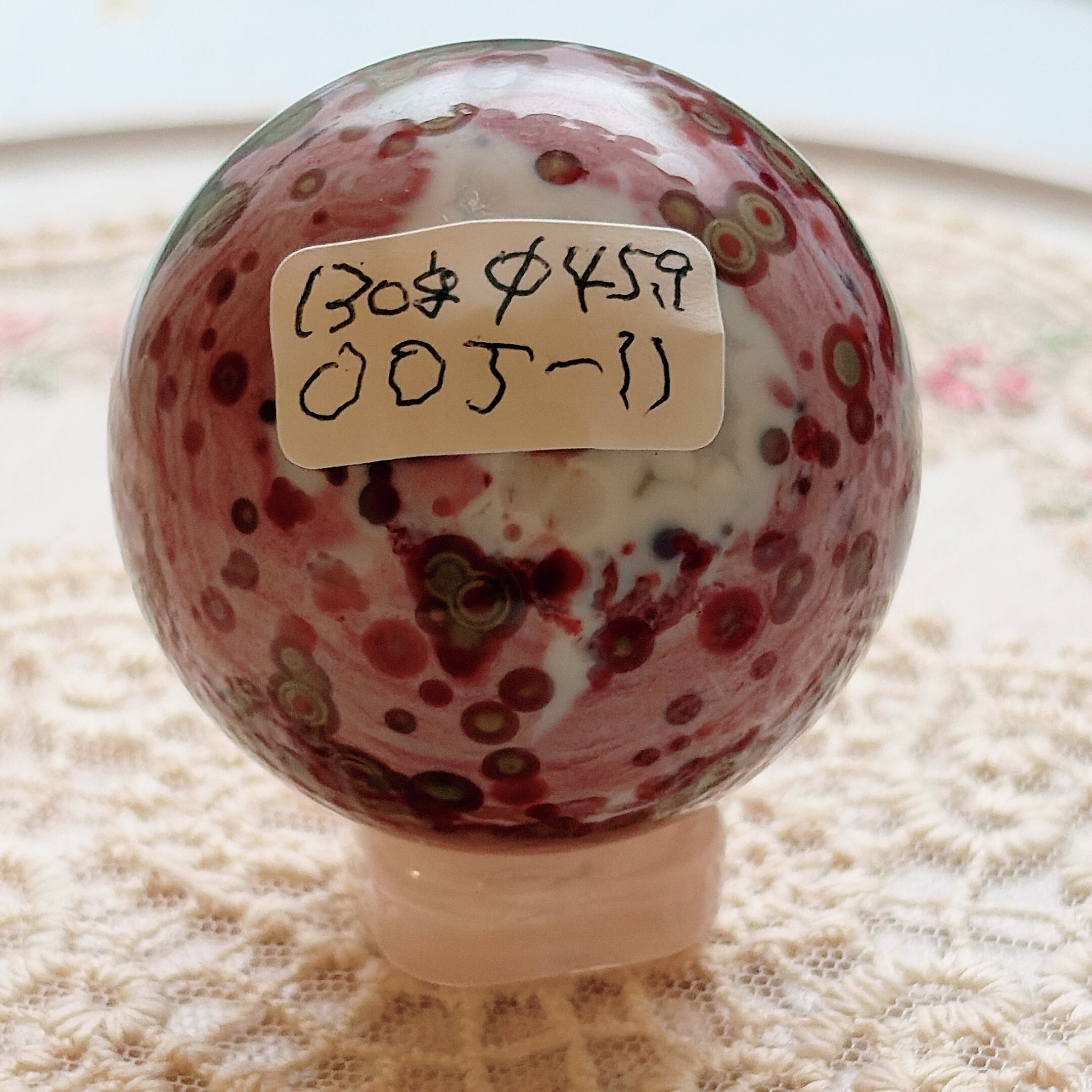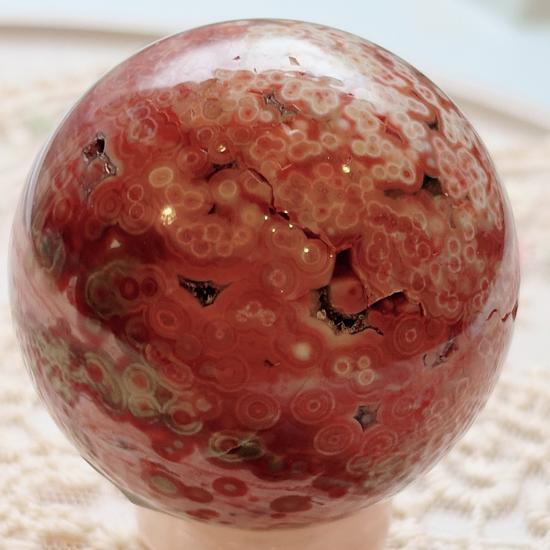 レア★オビキュラージャスパー★スフィア★オレンジ・ピンク・ホワイト・グリーン