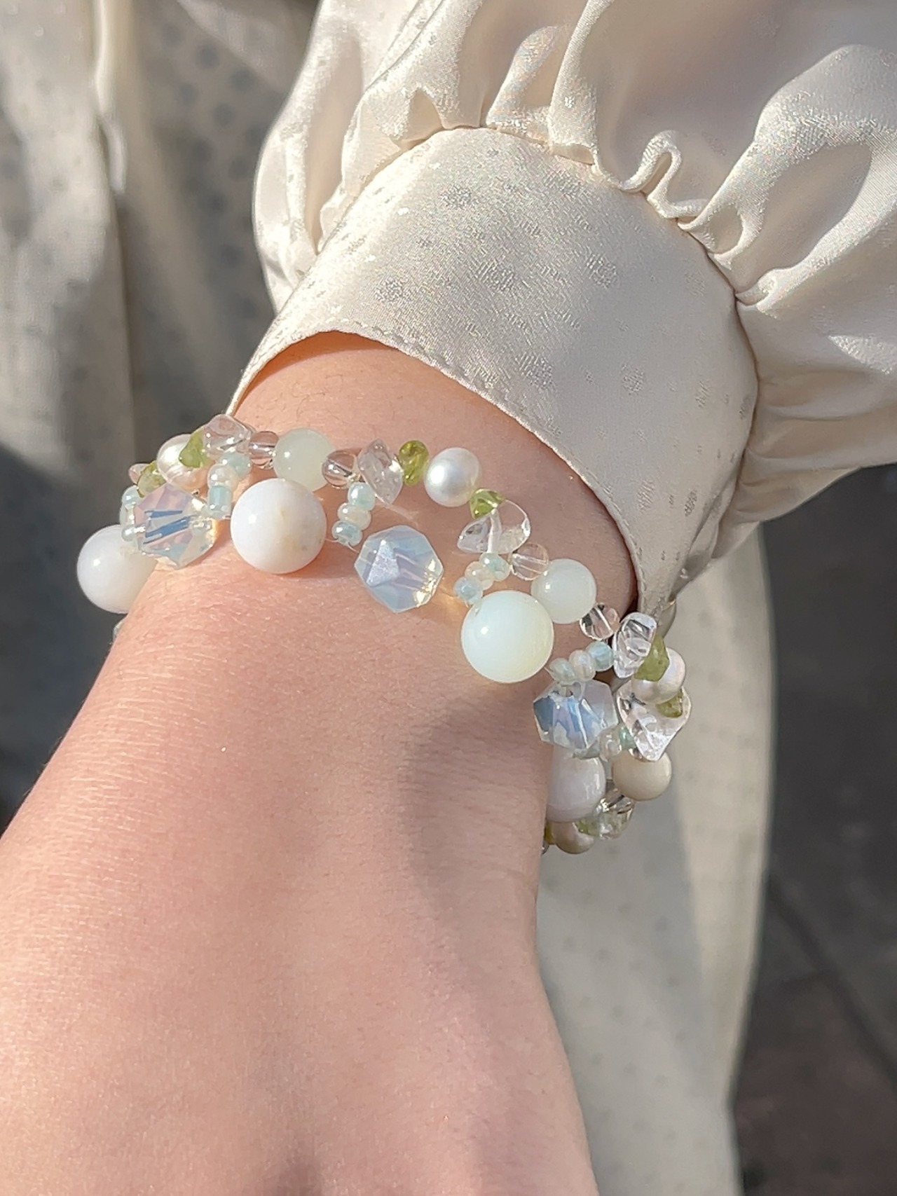 パステルミントグリーン★爽やかオパール★編み込みブレスレット★パワーストーンブレスレット★天然石