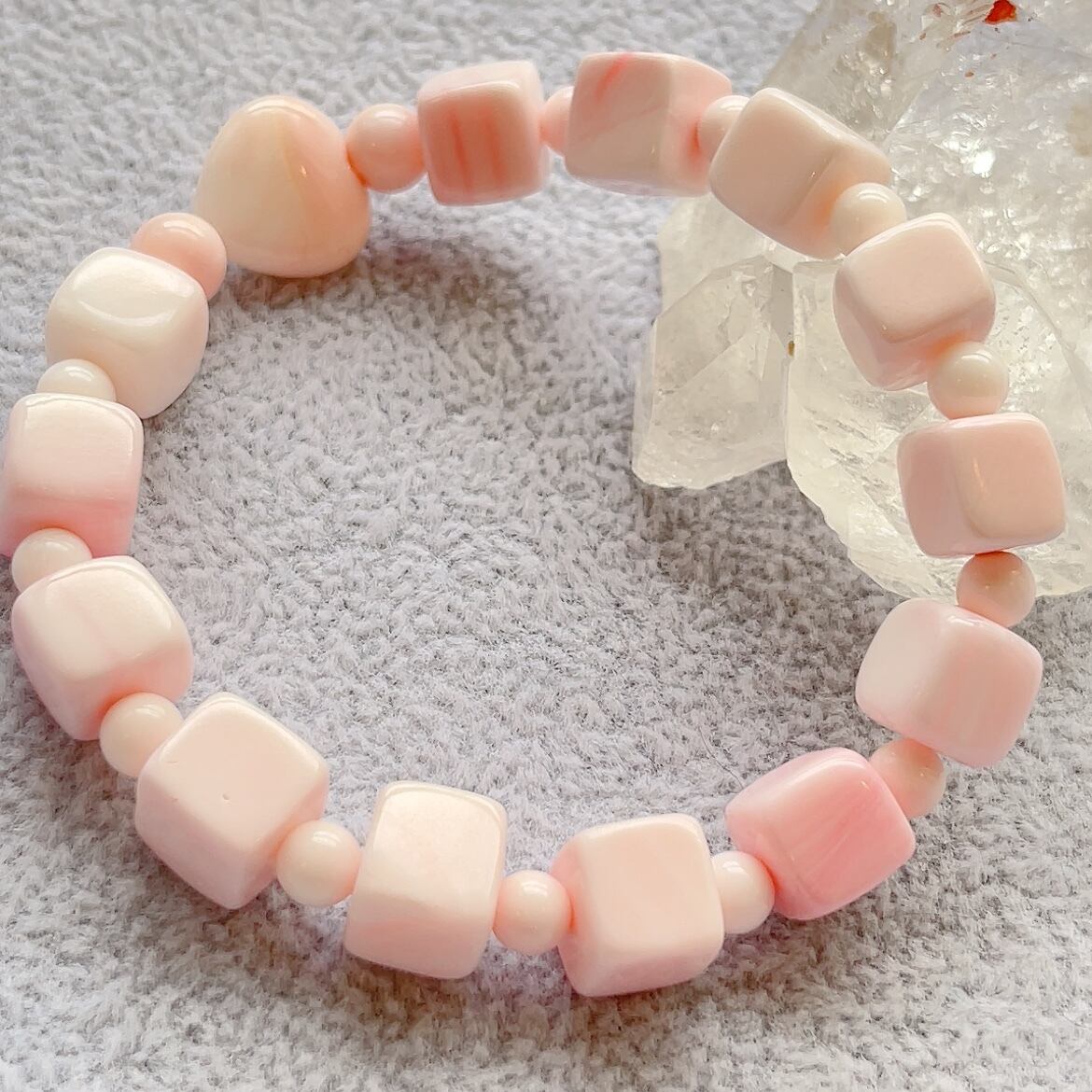 ハート&キューブ★キュート★ピンククィーンコンクシェル★パワーストーンブレスレット