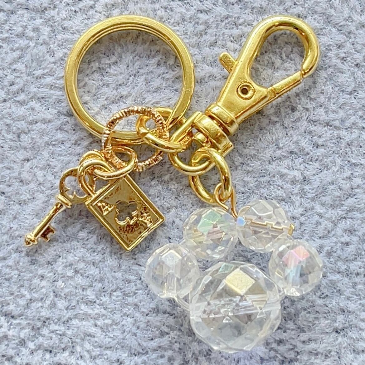 単品★ワンちゃんのためのパワーストーン★天然石肉球チャーム★犬鑑札ホルダー★カットオーラ水晶★ゴールド