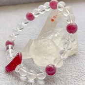 お月さま型ルビーと天然ルビー丸玉を水晶を合わせたオリジナルデザインブレスレット。