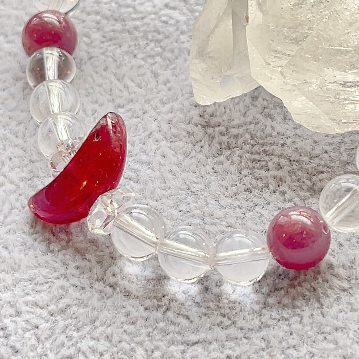 ルビーのお月さまが主役★天然ルビーと水晶のパワーストーンブレスレット