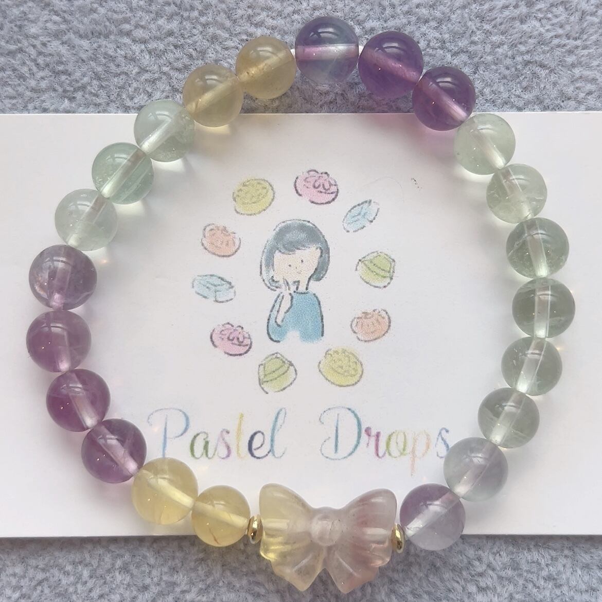 美!グラデーション★リボンがかわいい★カラフルフローライト★パワーストーンブレスレット