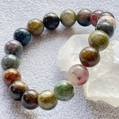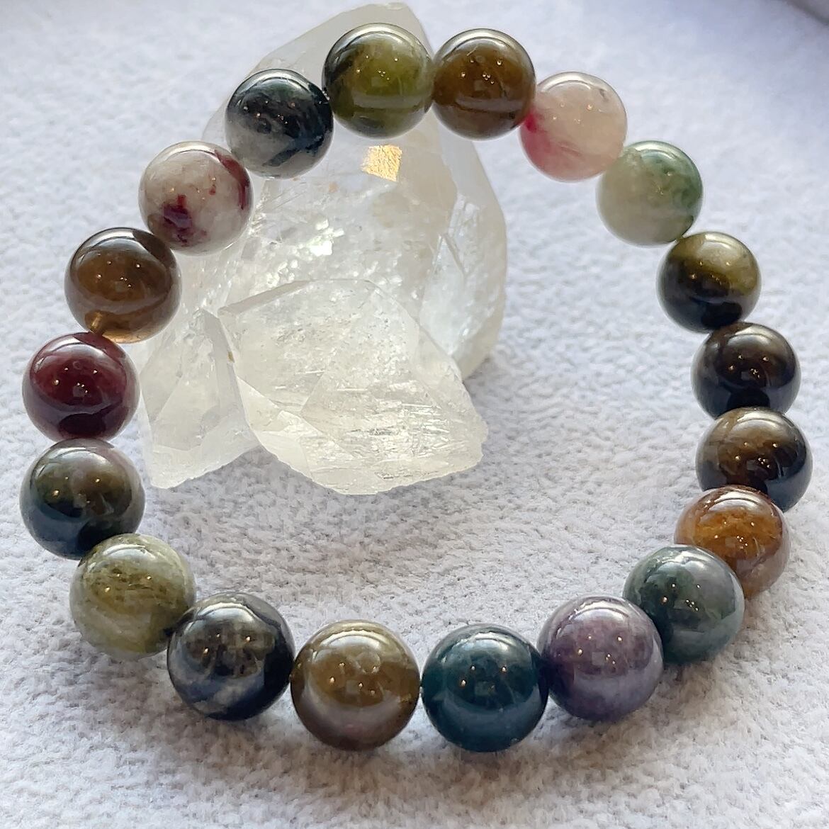 カラフルでうるツヤのトルマリンを集めたシンプルなブレスレットです。