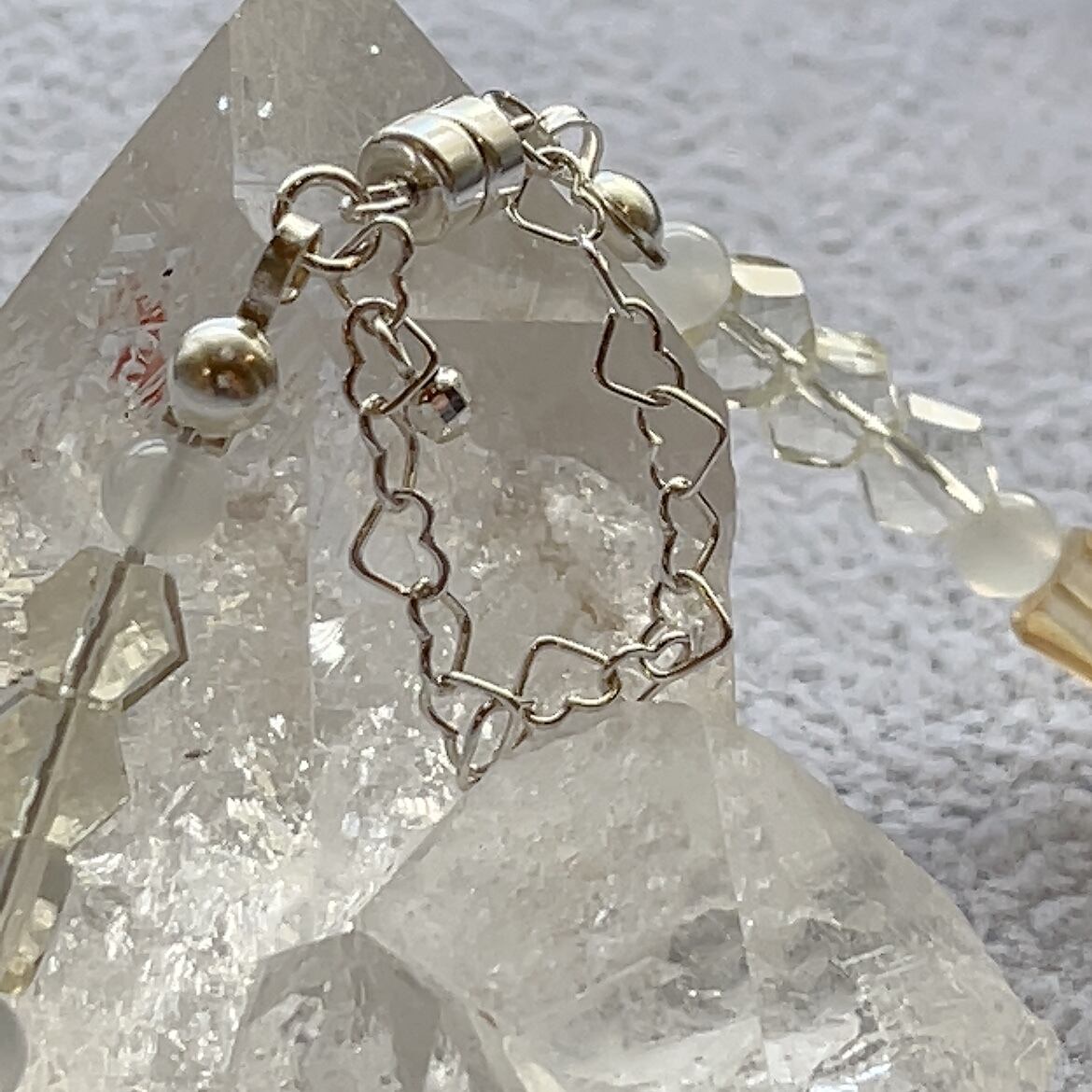 レモンクォーツのハートリボン★シトリン★ムーンストーン★パワーストーンブレスレット★細身ちゃん