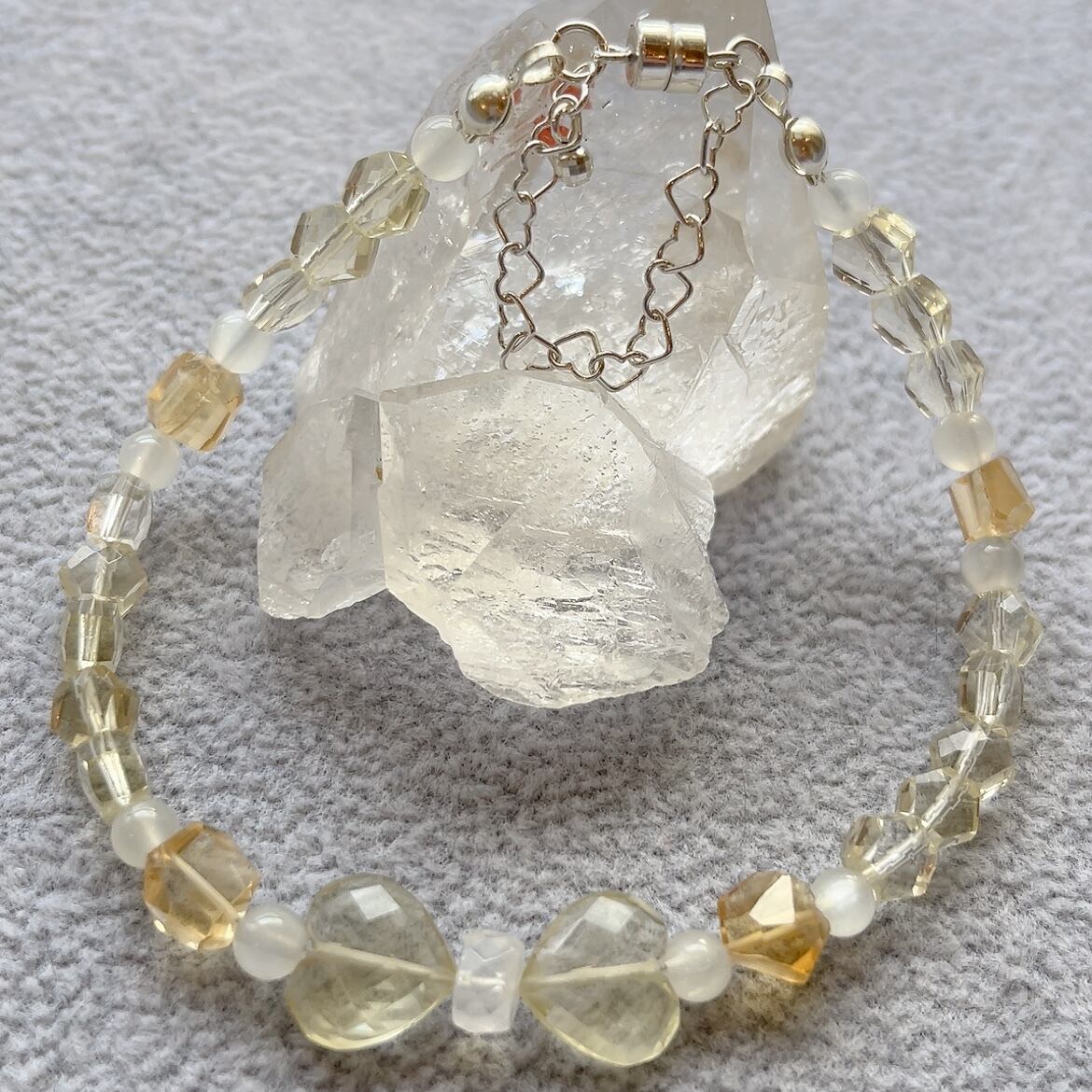レモンクォーツとシトリン、ムーンストーンを使用した細身ブレスレット。