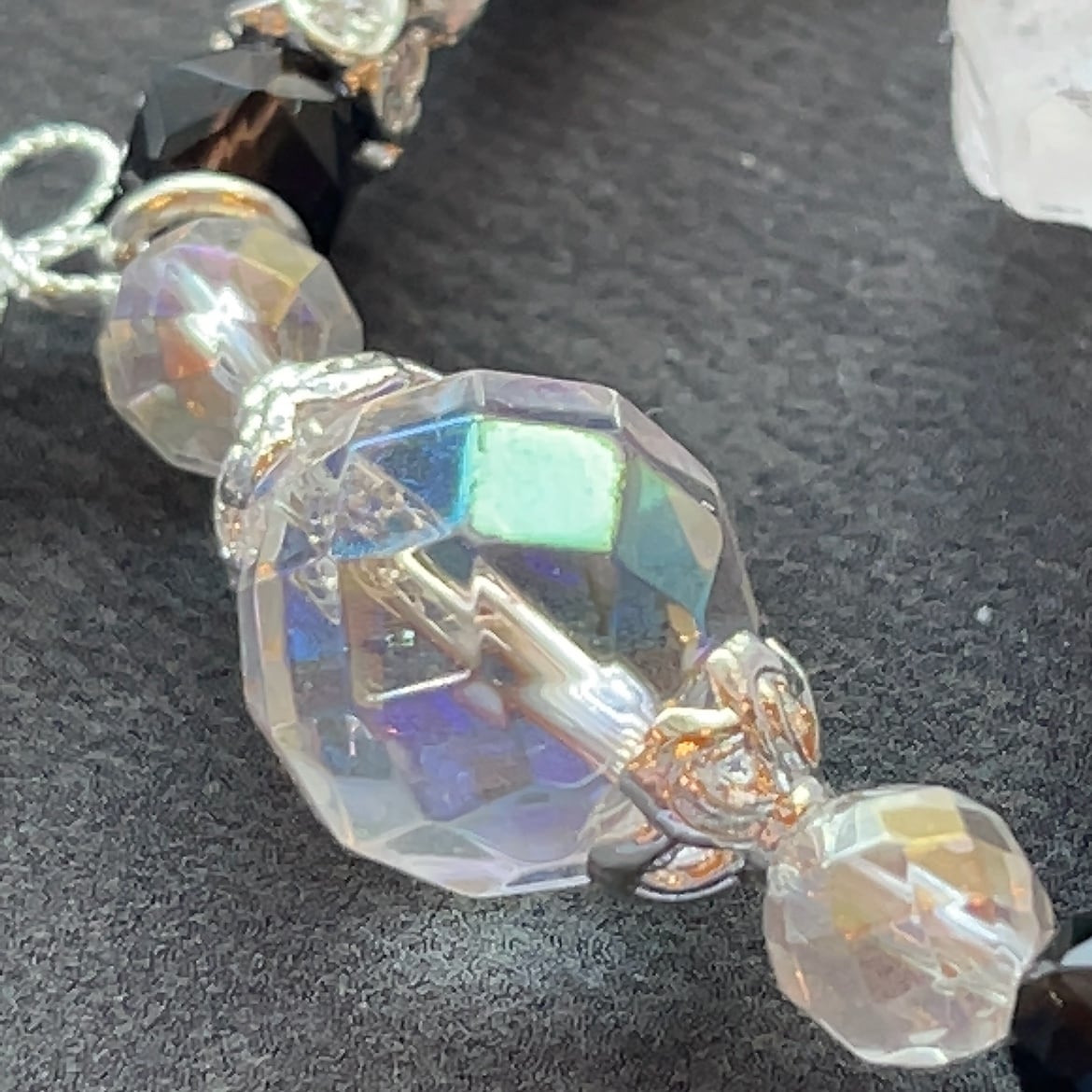 チベット産モリオンのスターカットにオーラカット水晶を組み合わせたデザインブレスレット。
