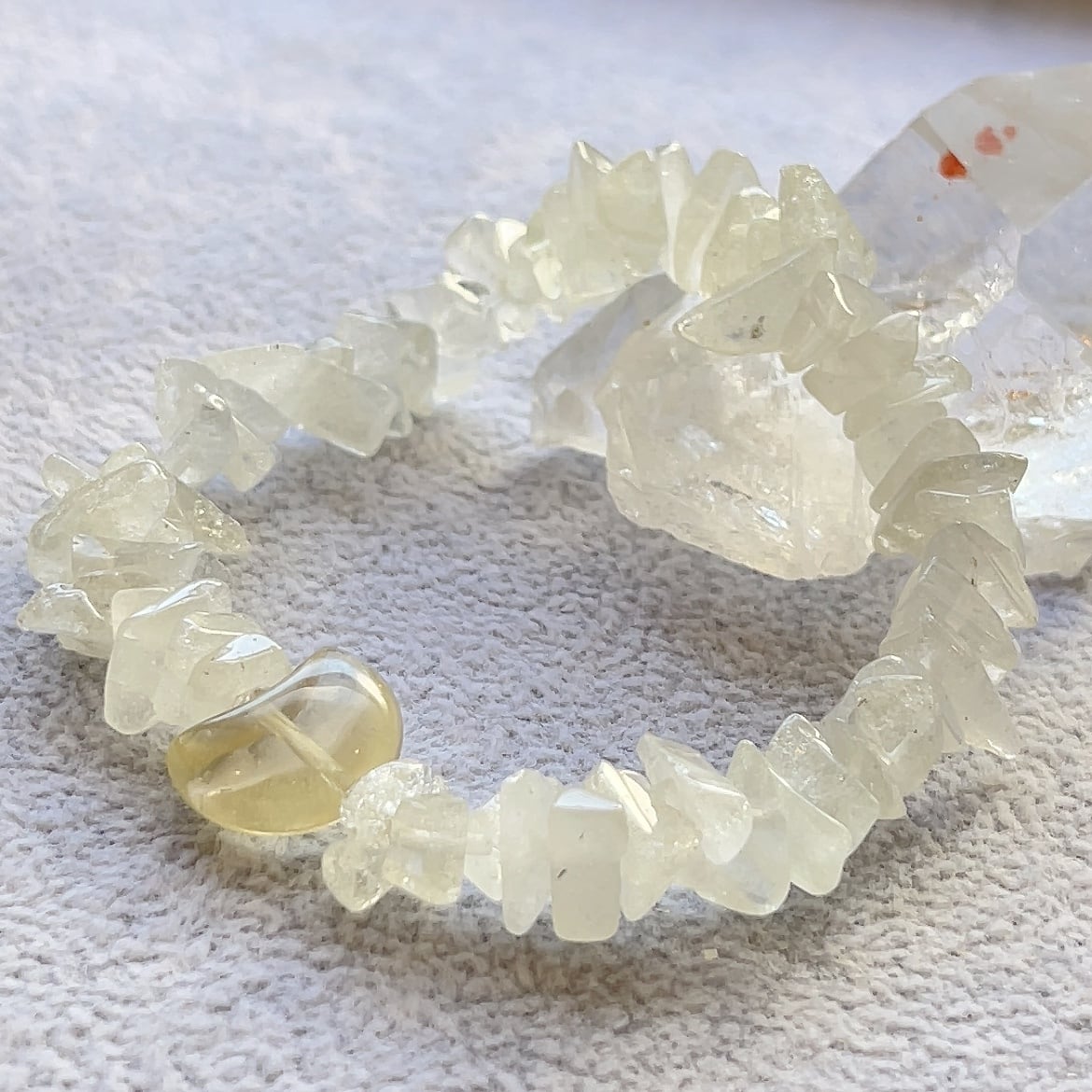 レモンクォーツのお月さま★リビアングラスさざれ★パワーストーンブレスレット★かわいいブレスレット