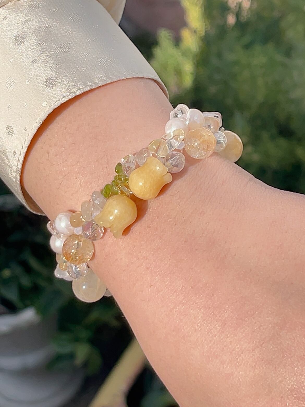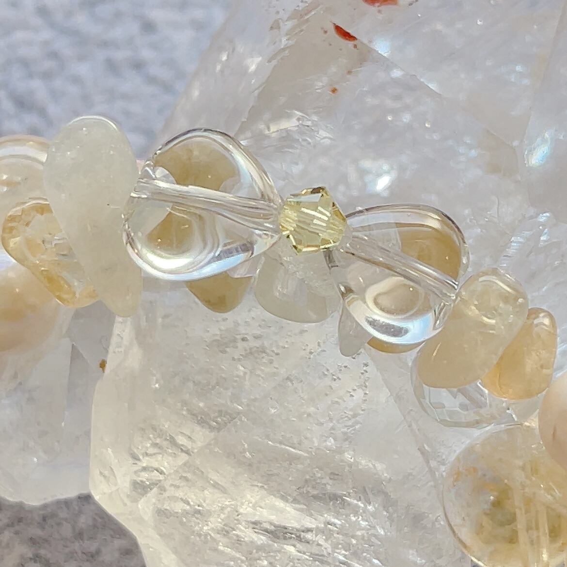 アベンチュリンすずらん★ハートリボン★イエローマニカラン★シトリン★編み込みブレスレット★パワーストーンブレスレット