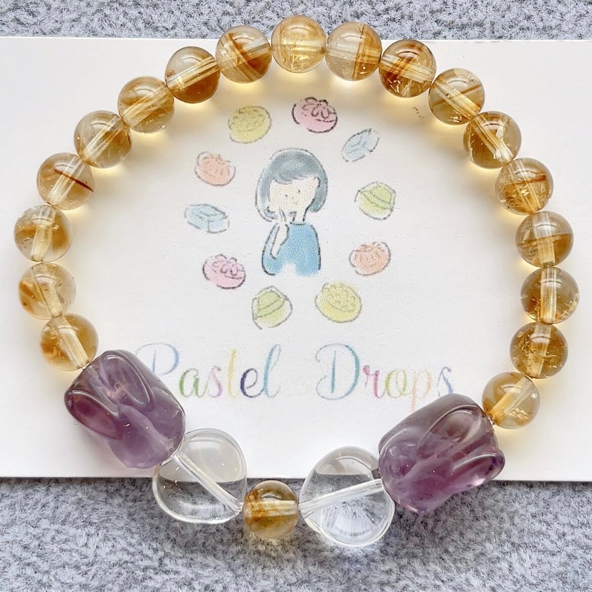 シトリンファントム★アメジストうさぎ★水晶ハートリボン★パワーストーンブレスレット