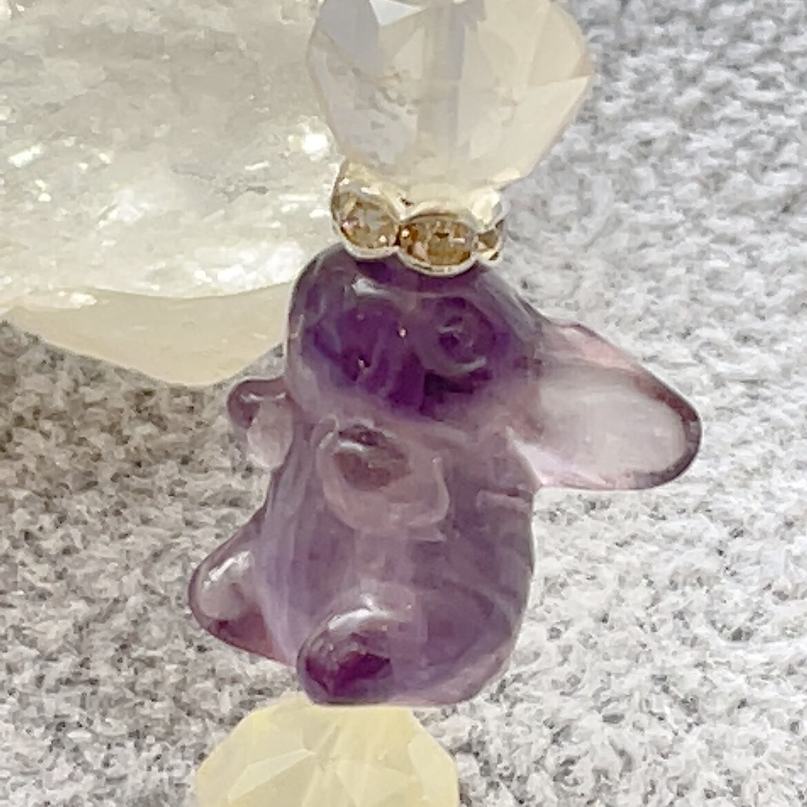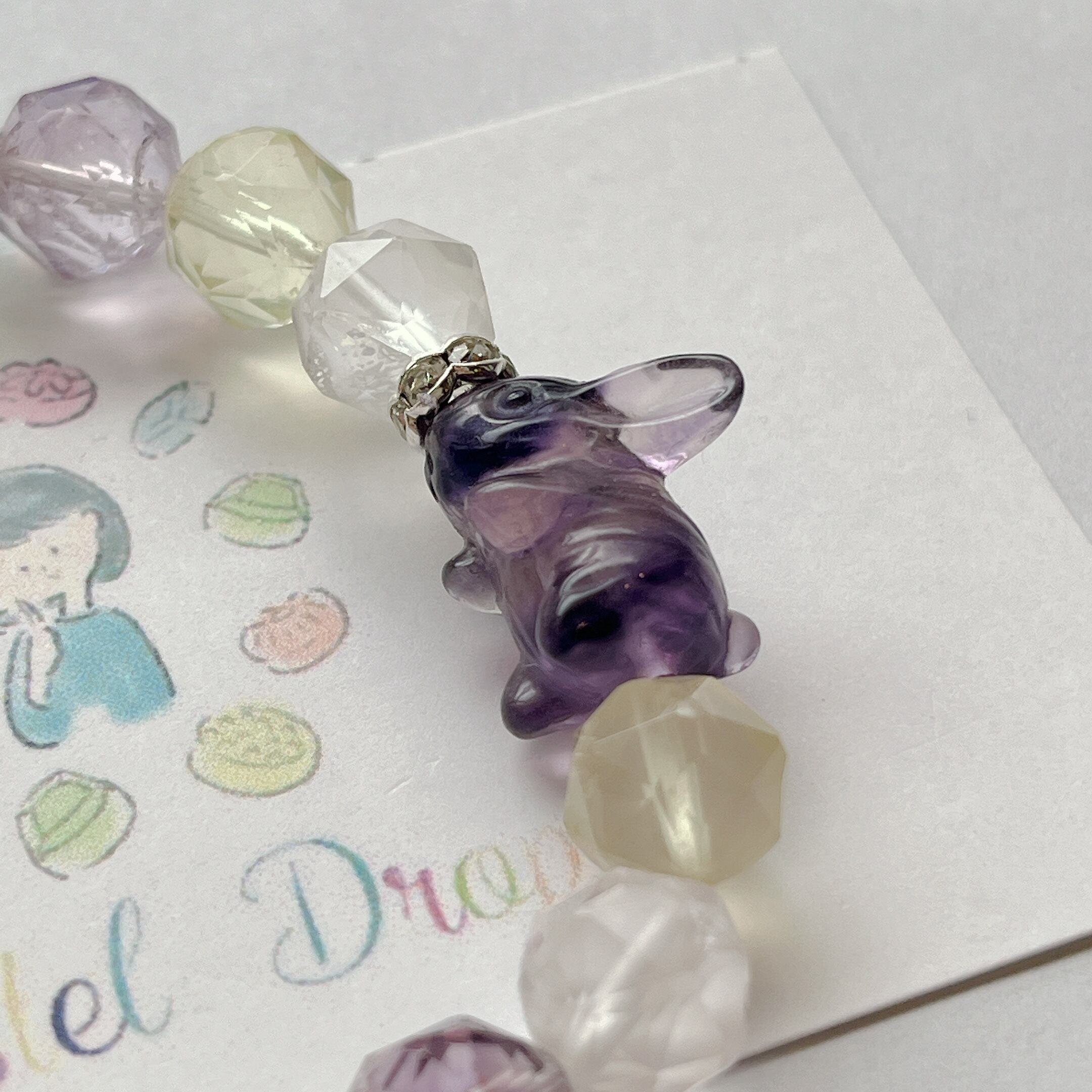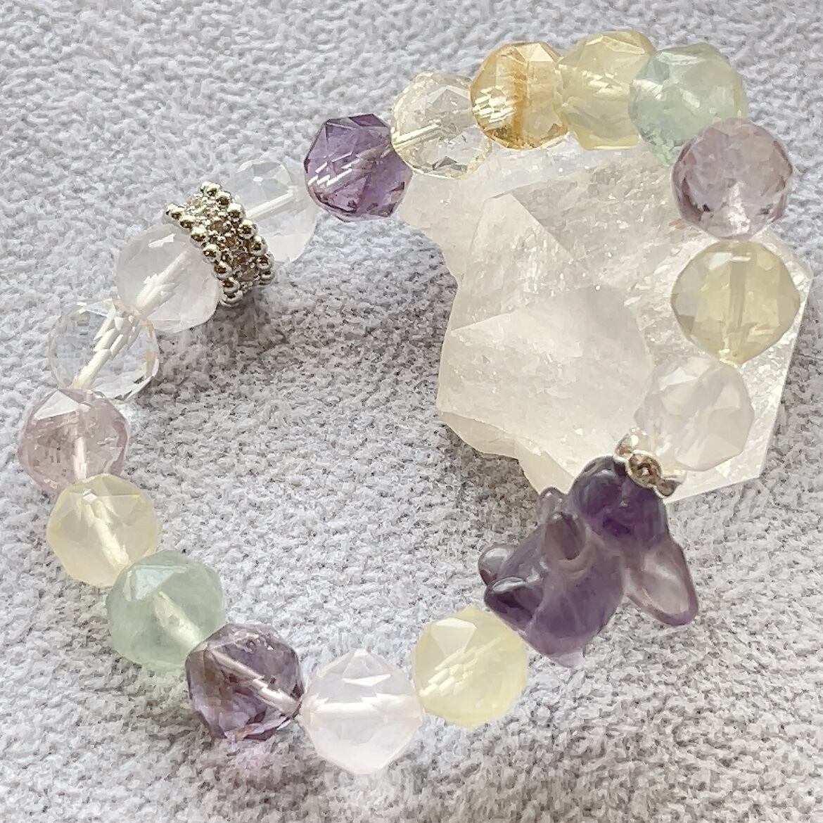 フローライトうさぎ★キラキラカット欲張り宝石*アメジスト*グリーンアメジスト*ローズクォーツ*シトリン*レモンクォーツ*水晶★パワーストーンブレスレット