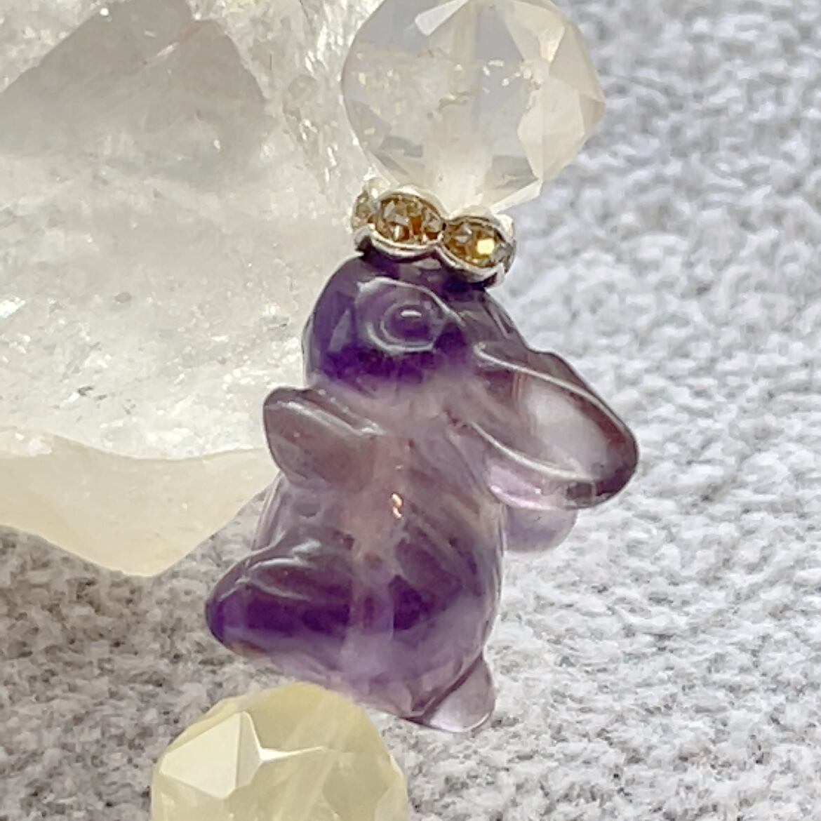 スターカットでキラキラを楽しめるいろいろな宝石にフローライトのうさぎさんを合わせました。