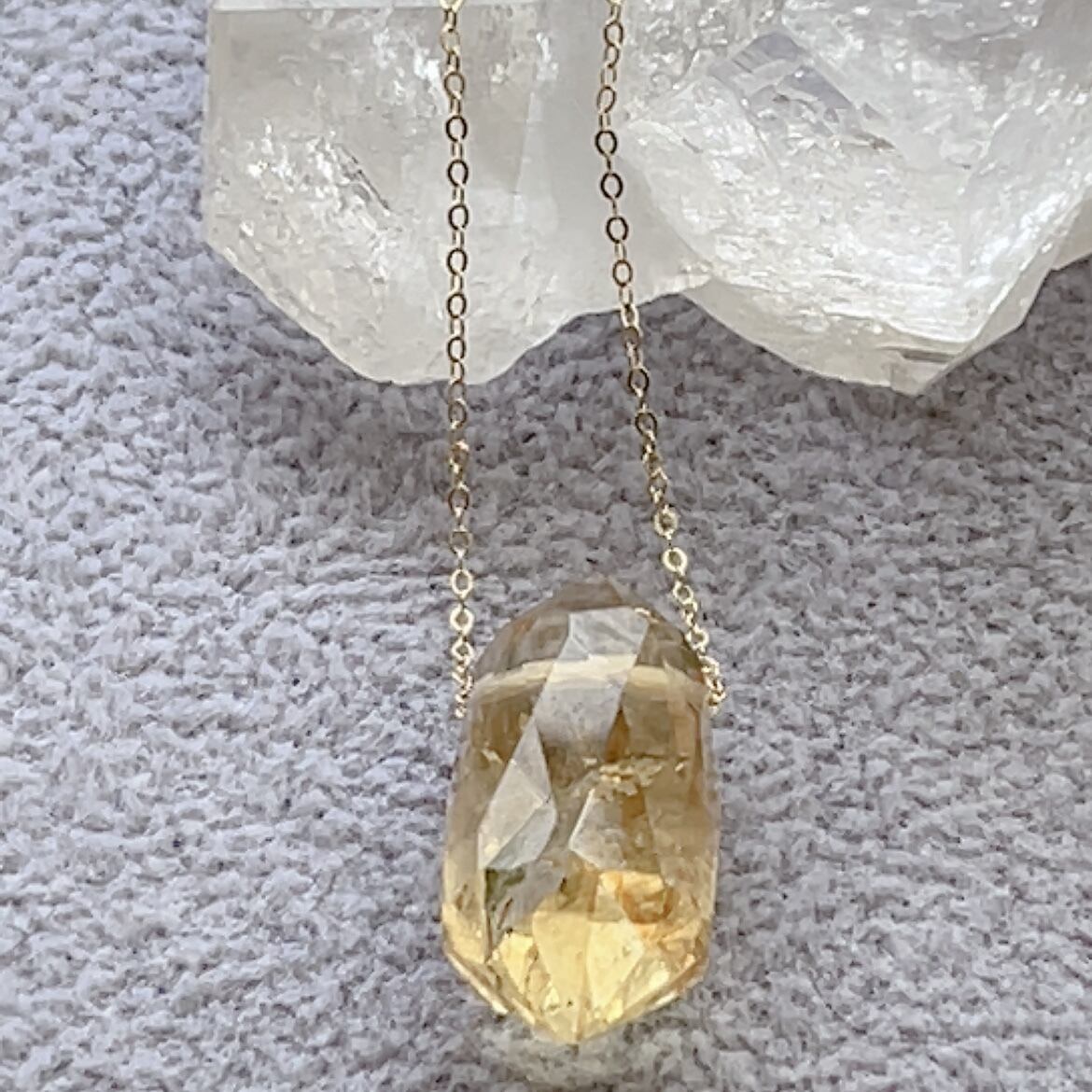 シトリンダブルポイント★ファセットカット★パワーストーンペンダント★パワーストーンネックレス