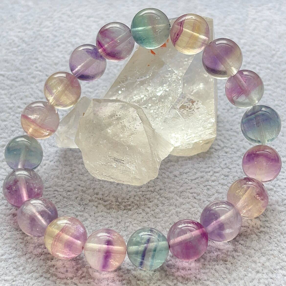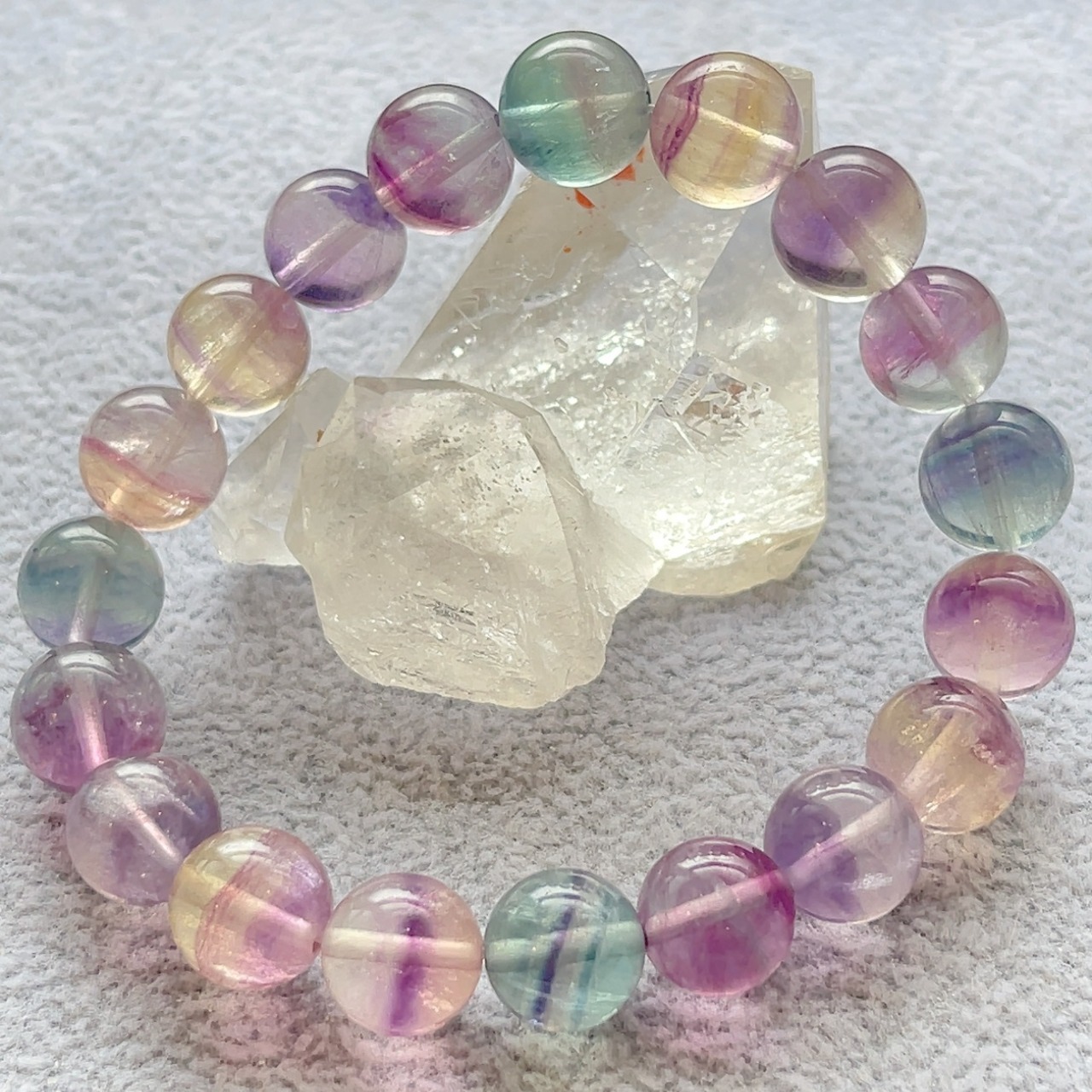 1つ1つのビーズの中でバイカラーが美しいフローライトのシンプルブレスレット。