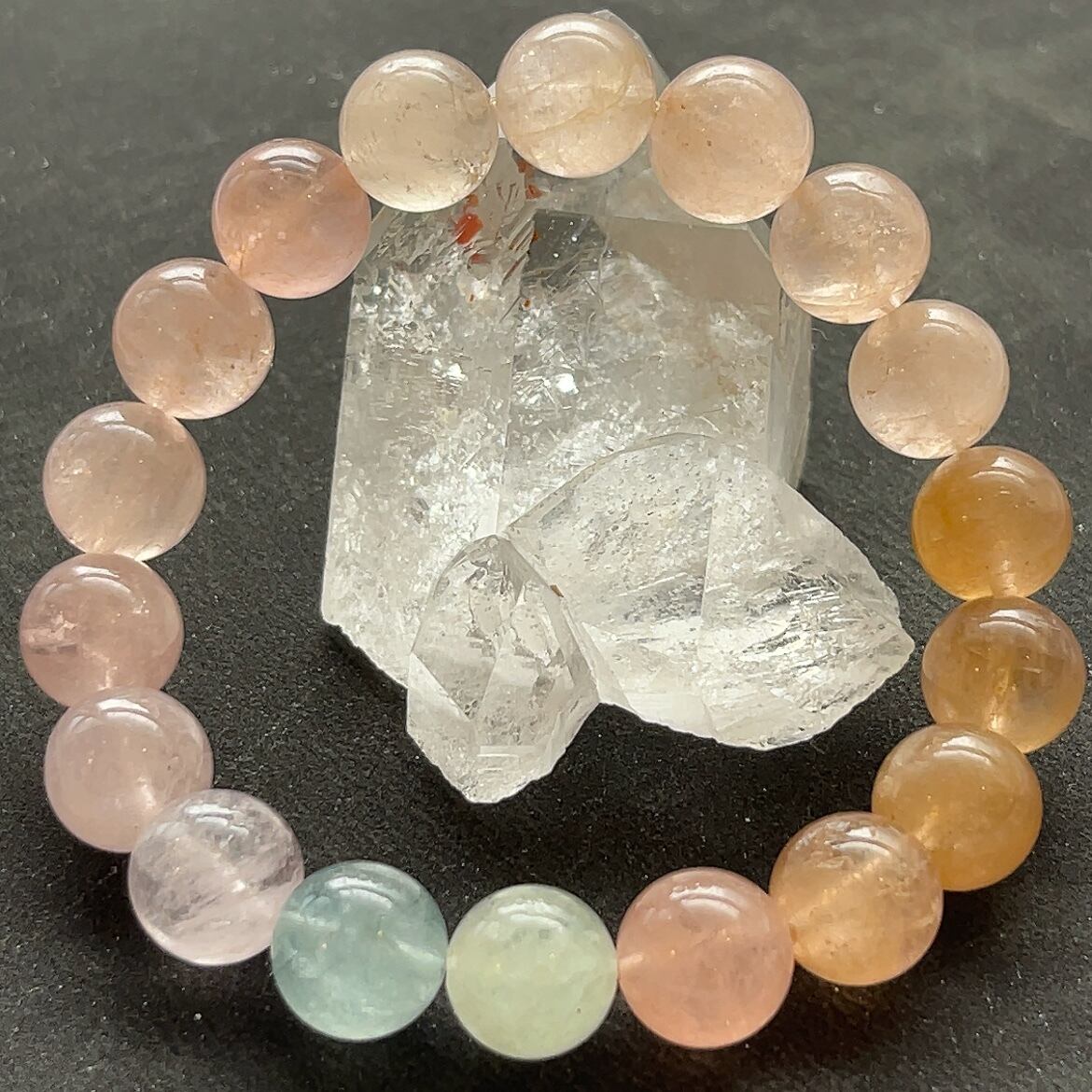 透明感もあり、モルガナイトらしくピンク多め〜オレンジ、グリーン、ブルーと優しいパステルカラーが楽しめます。