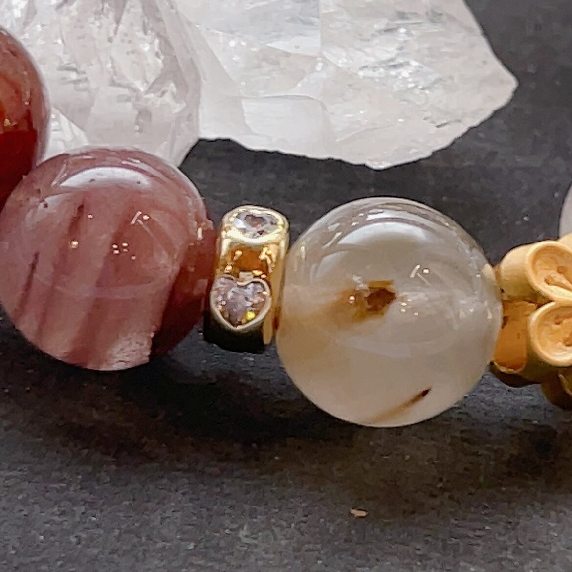 12mmサゲニティッククォーツ★パワーストーンブレスレット★ブラウン〜オレンジ