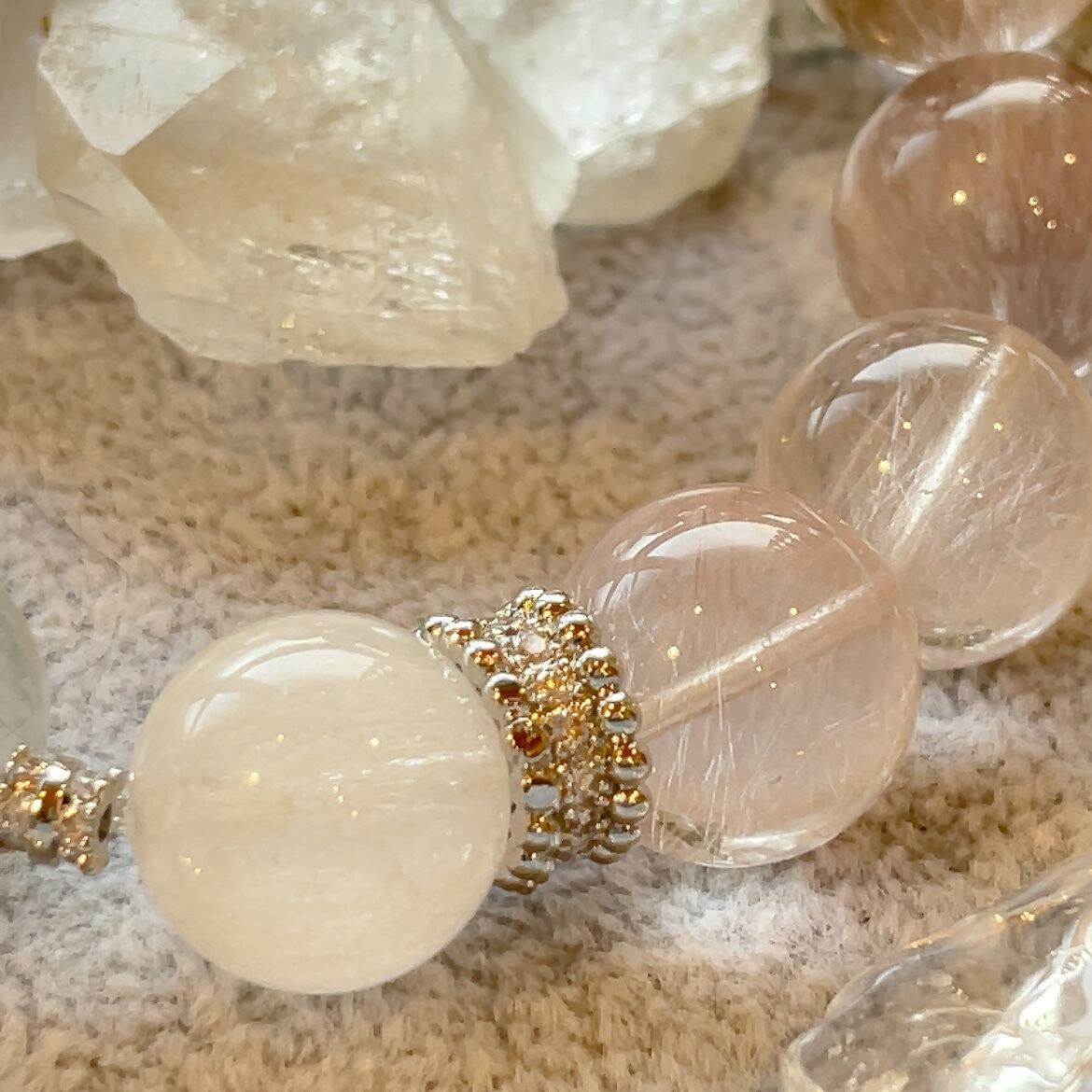 大玉のパステルカラーのサゲニティッククォーツを集めた、超ラグジュアリーなブレスレット。