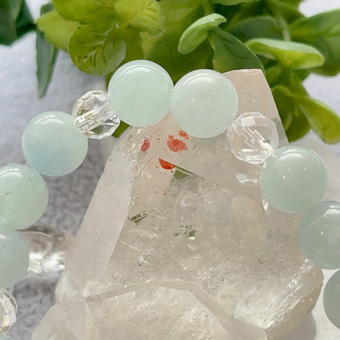 アクアマリン★ハートリボン★パワーストーン★デザインブレスレット★天然石★かわいいブレスレット