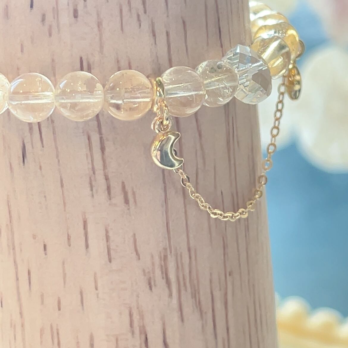 シルバー925お星さまとお月さまチェーン★シトリン★ぷっくりカットお星さま★パワーストーンブレスレット★天然石★デザインブレスレット