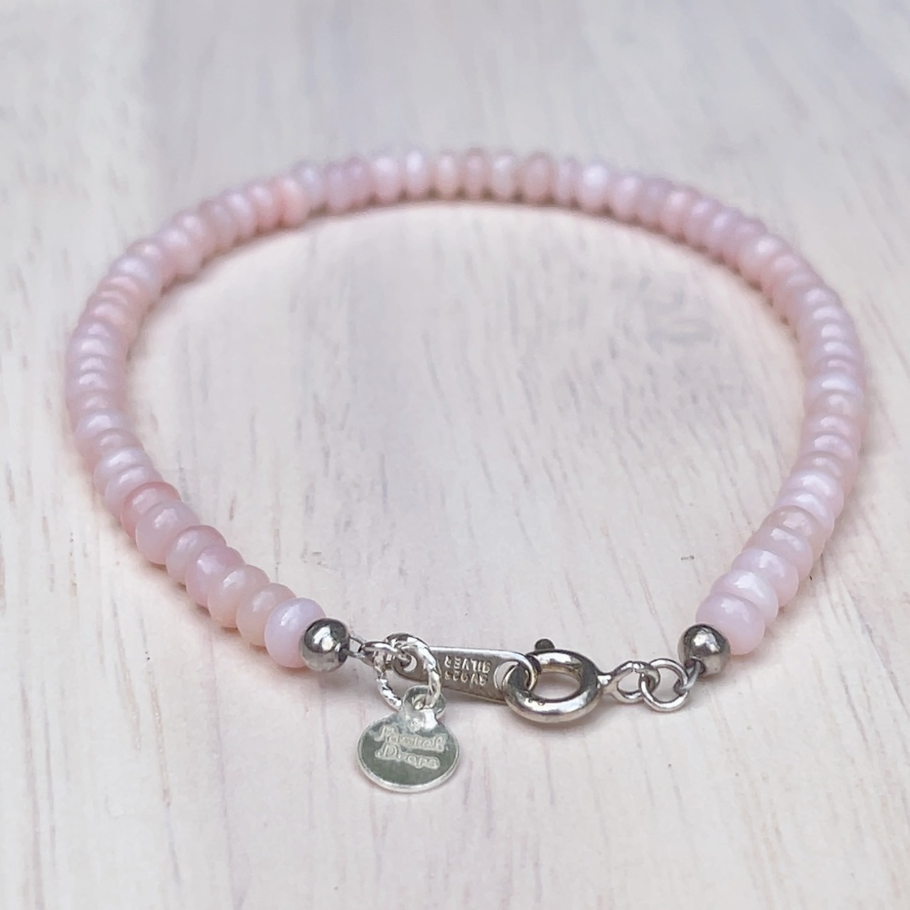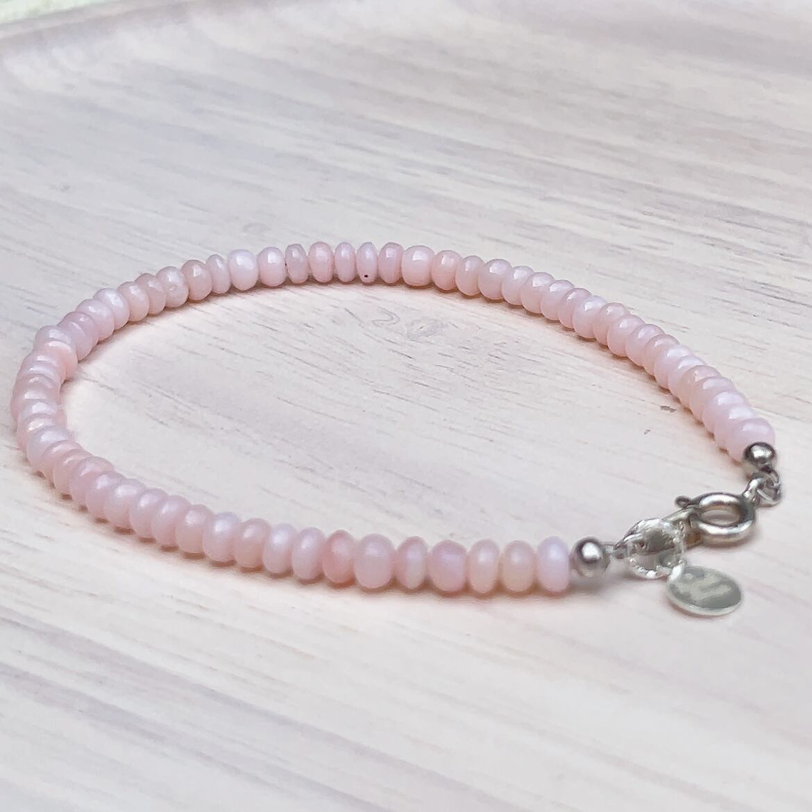 パステルオリジナルプレート付き★シルバー925★ピンクオパール★ボタン★パワーストーン★天然石