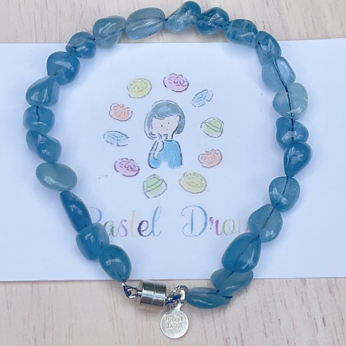 パステルオリジナルプレート付き★濃い〜アクアマリン★マグネットで脱着簡単★パワーストーンブレスレット★天然石