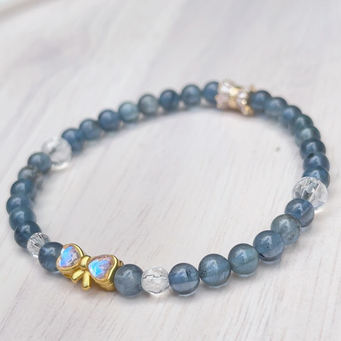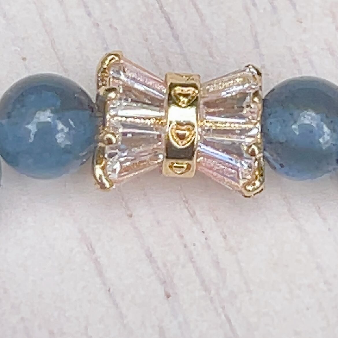 小さなオーラリボン★モスアクアマリン★細身★パワーストーンブレスレット★天然石