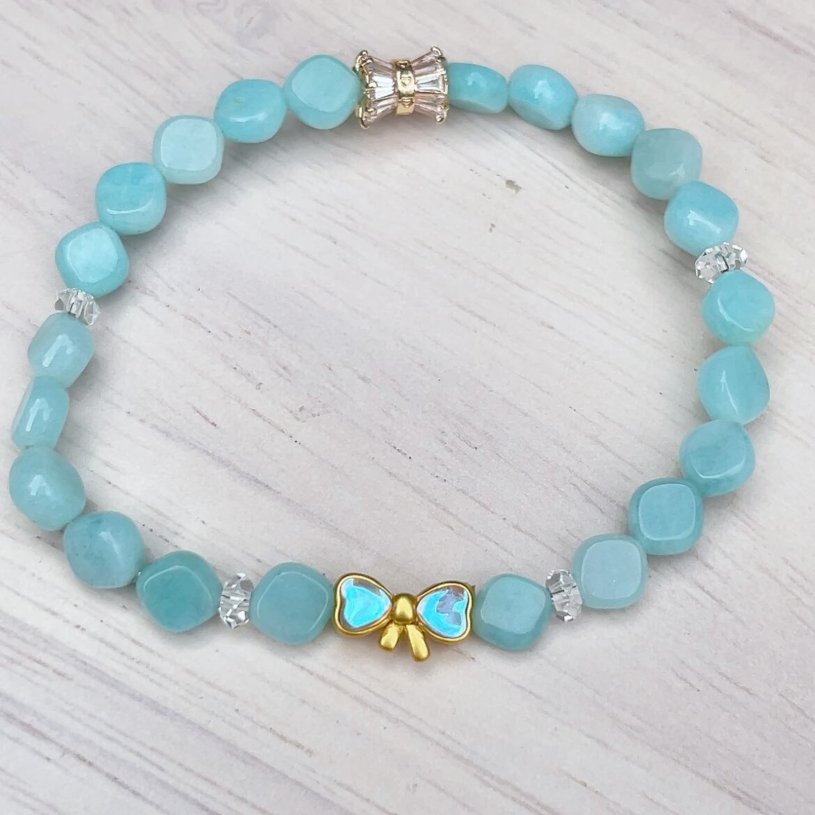 アマゾナイトの優しいブルーが印象的な、シンプルで上品なパワーストーンブレスレット。