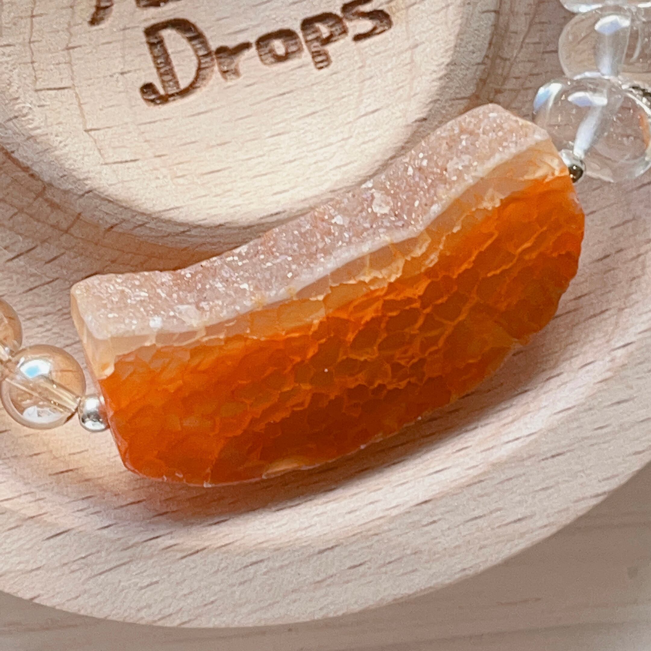 このブレスレットは、ドゥルージーアゲート、水晶、アンバーオーラライトクォーツなど、数種類の稀少な天然石を使用しています。
