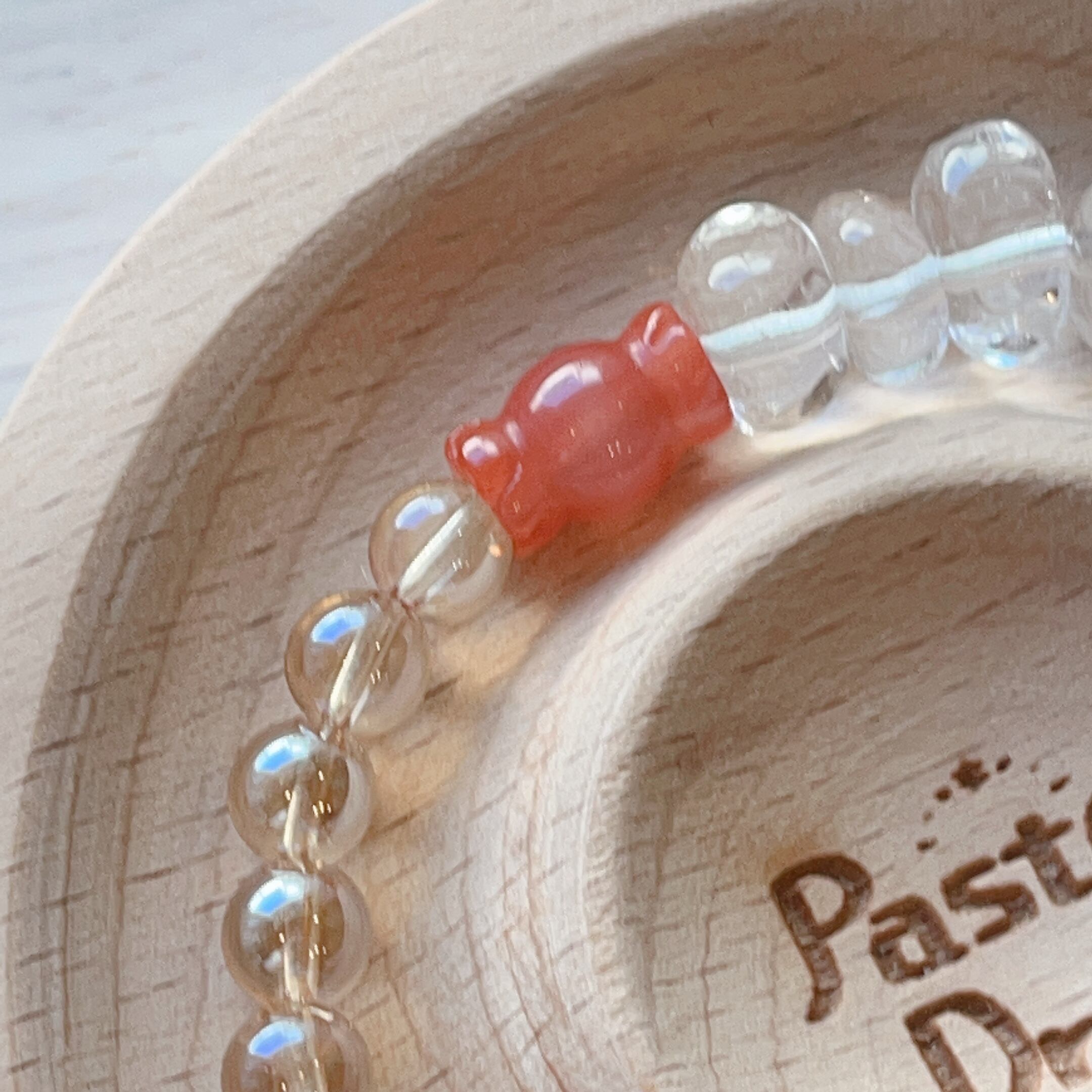 また、瑪瑙のキャンディとリボンがブレスレットを華やかに彩り、手元を引き立てます。