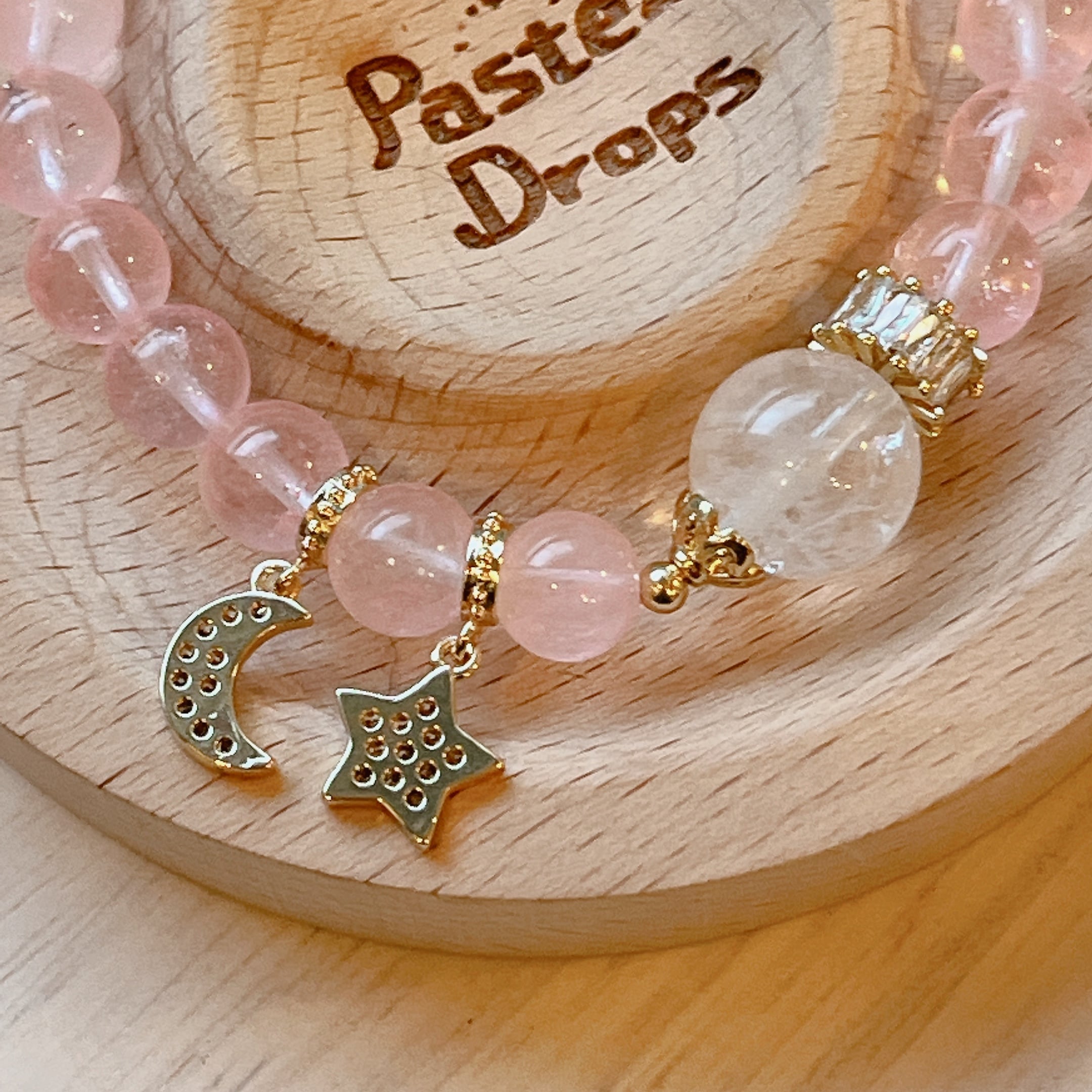 レインボーマニカラン水晶★ピンクトパーズ★月と星のキラキラゆらゆら★パワーストーンブレスレット★天然石
