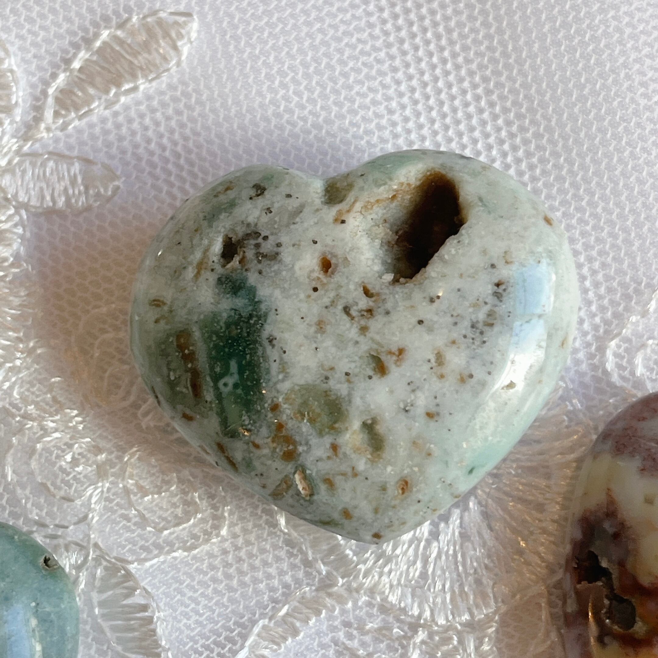 心を浄化し、穏やかな癒しをもたらすオーシャンジャスパーが、愛らしいハートの形をした3個セットで登場です。