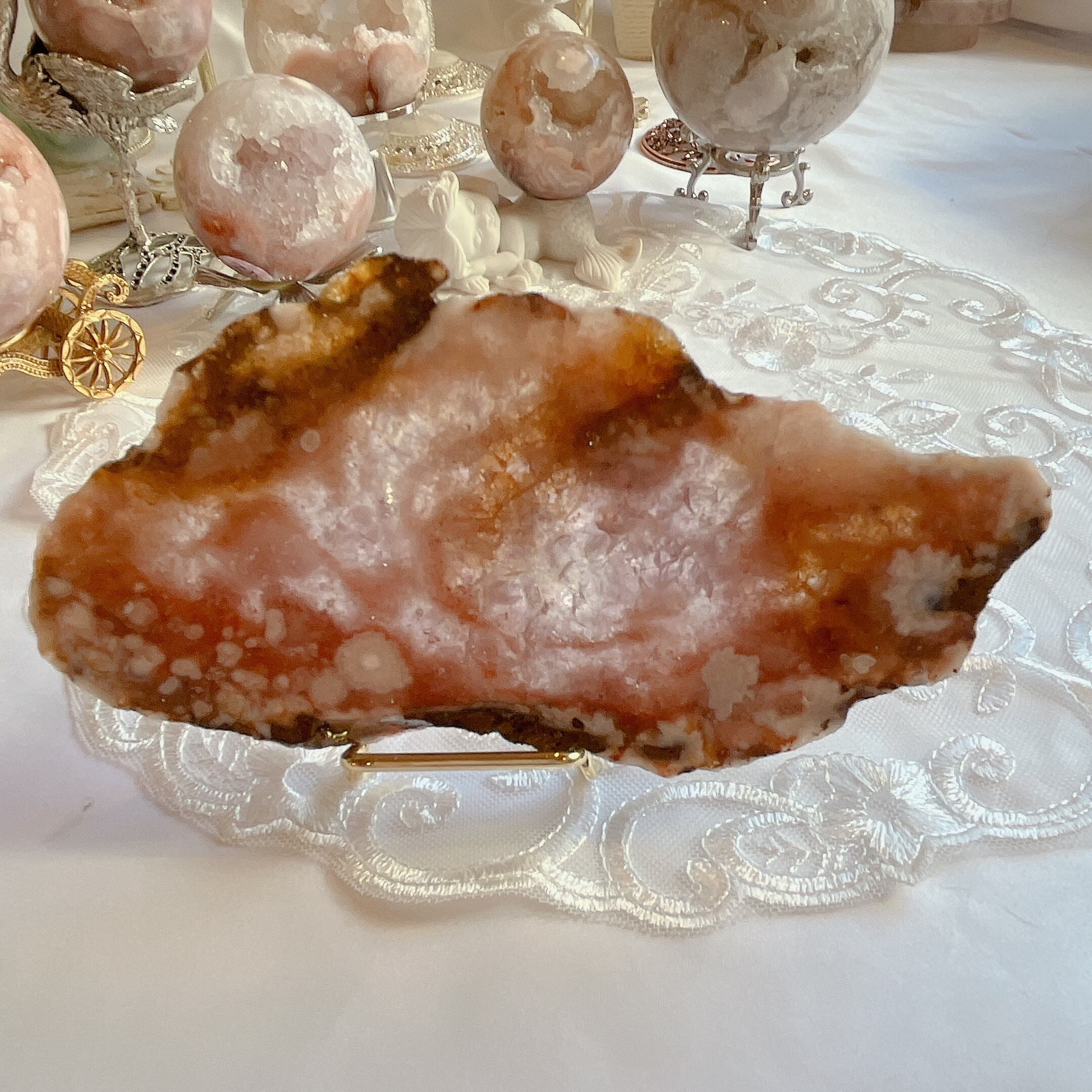 美しい桜瑪瑙とピンクアメジストが融合したプレートスライスのパワーストーンです。