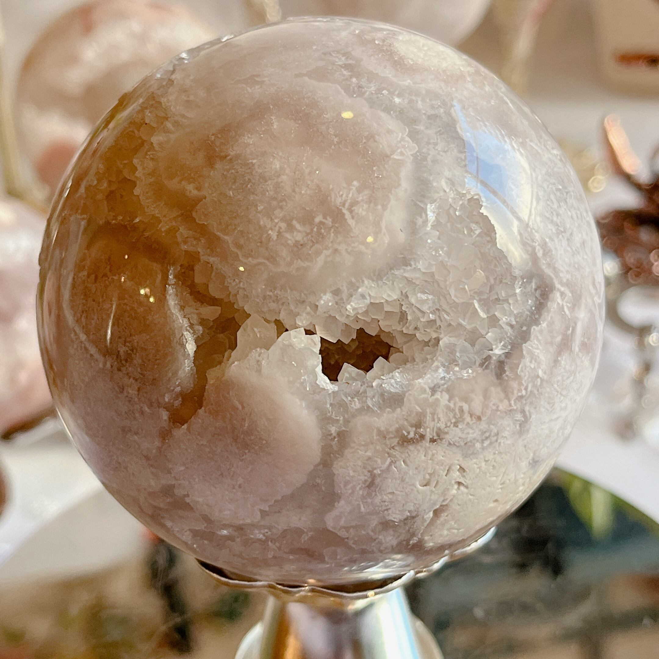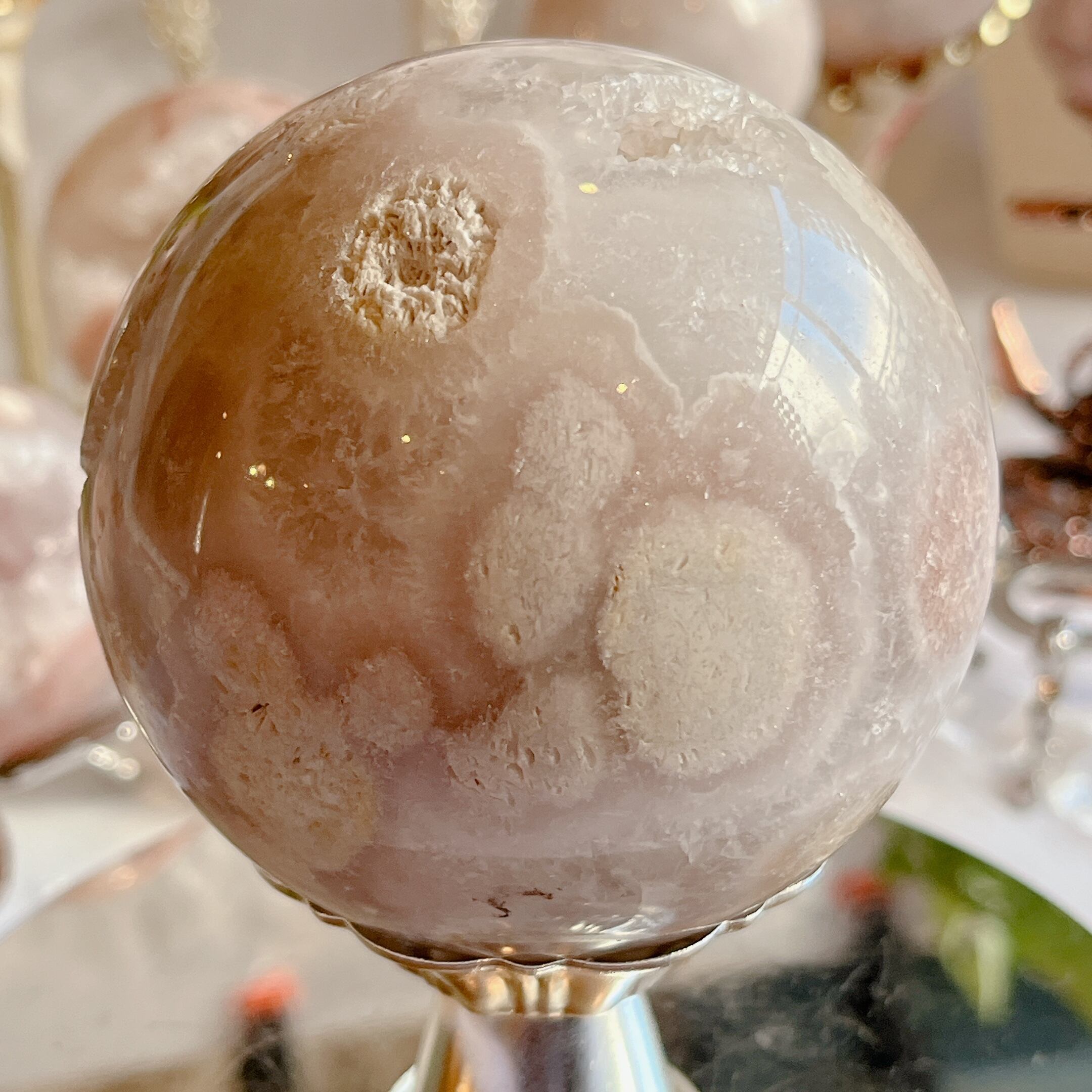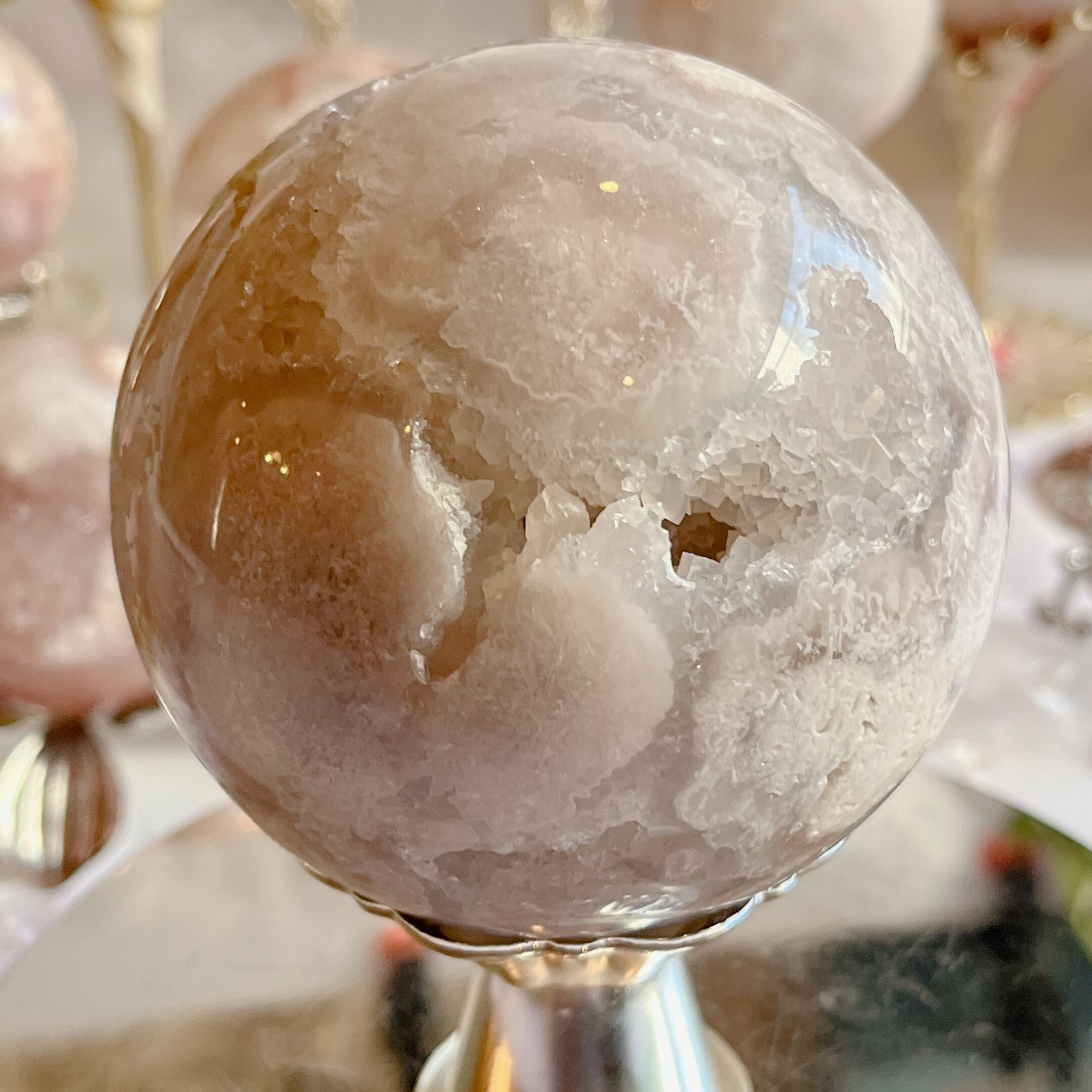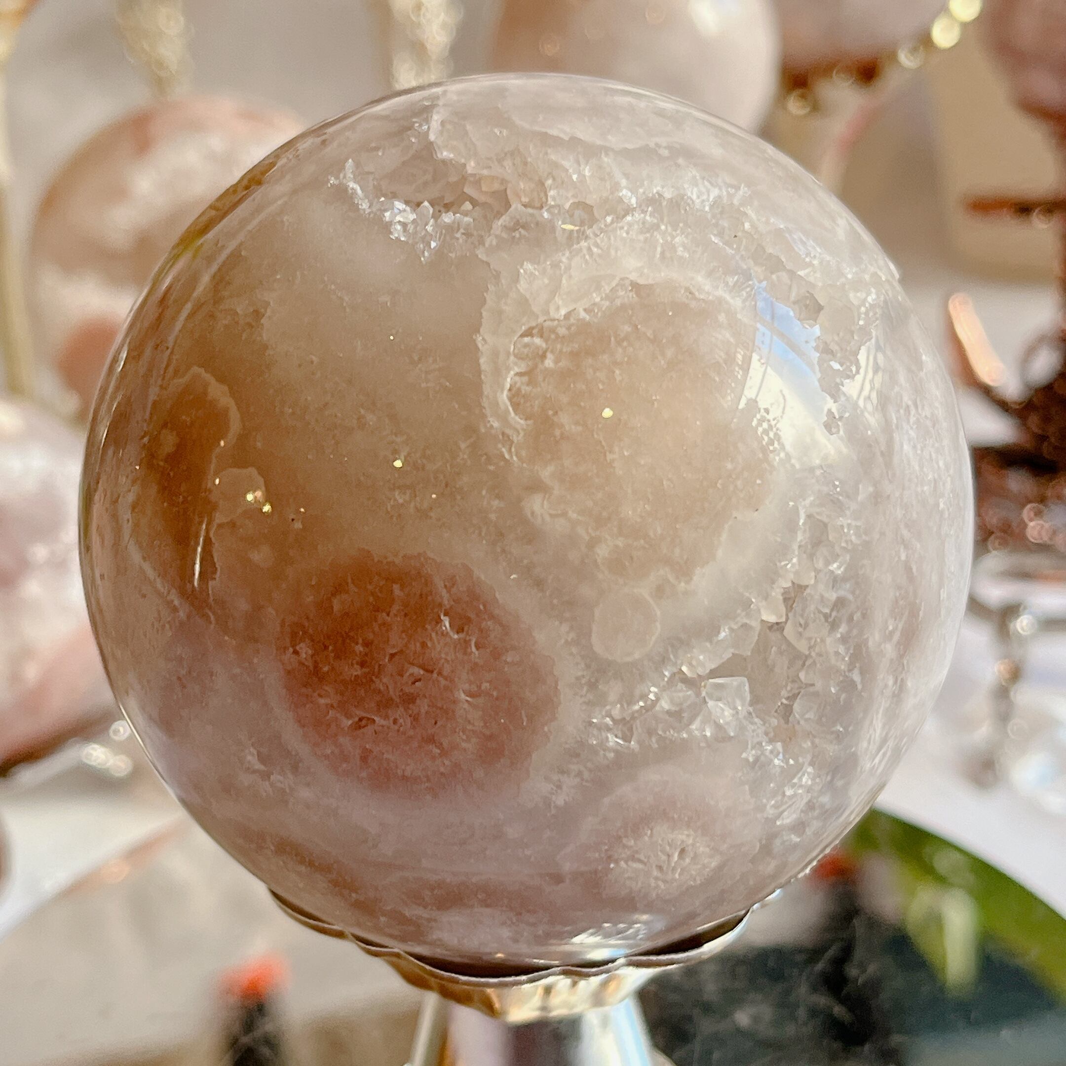 この特別なピンクアメジストのスフィアを手にした時、心が安らぎ、幸せな気持ちに包まれることでしょう。