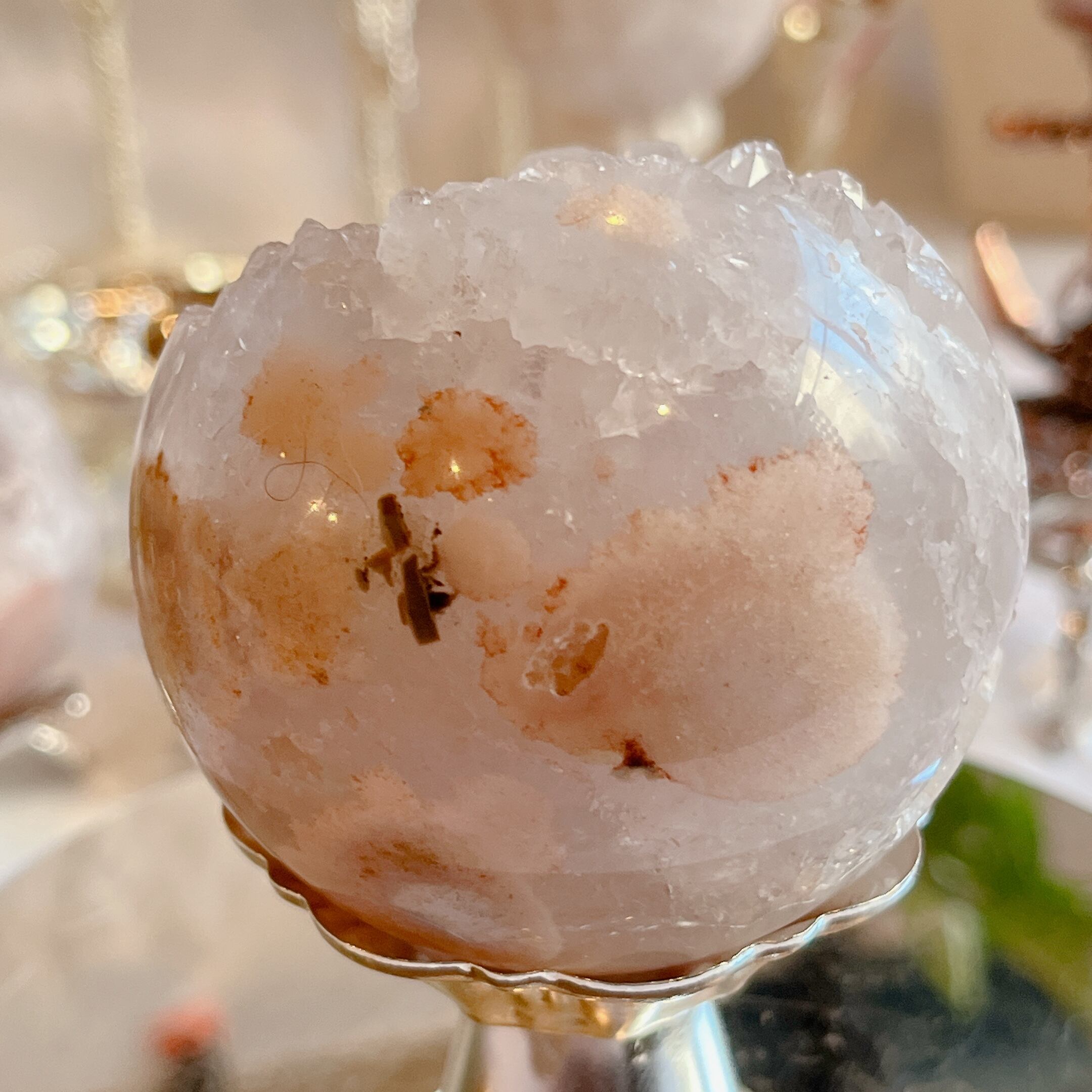 ピンクアメジストと瑪瑙の共生が美しい、天然石のスフィア。