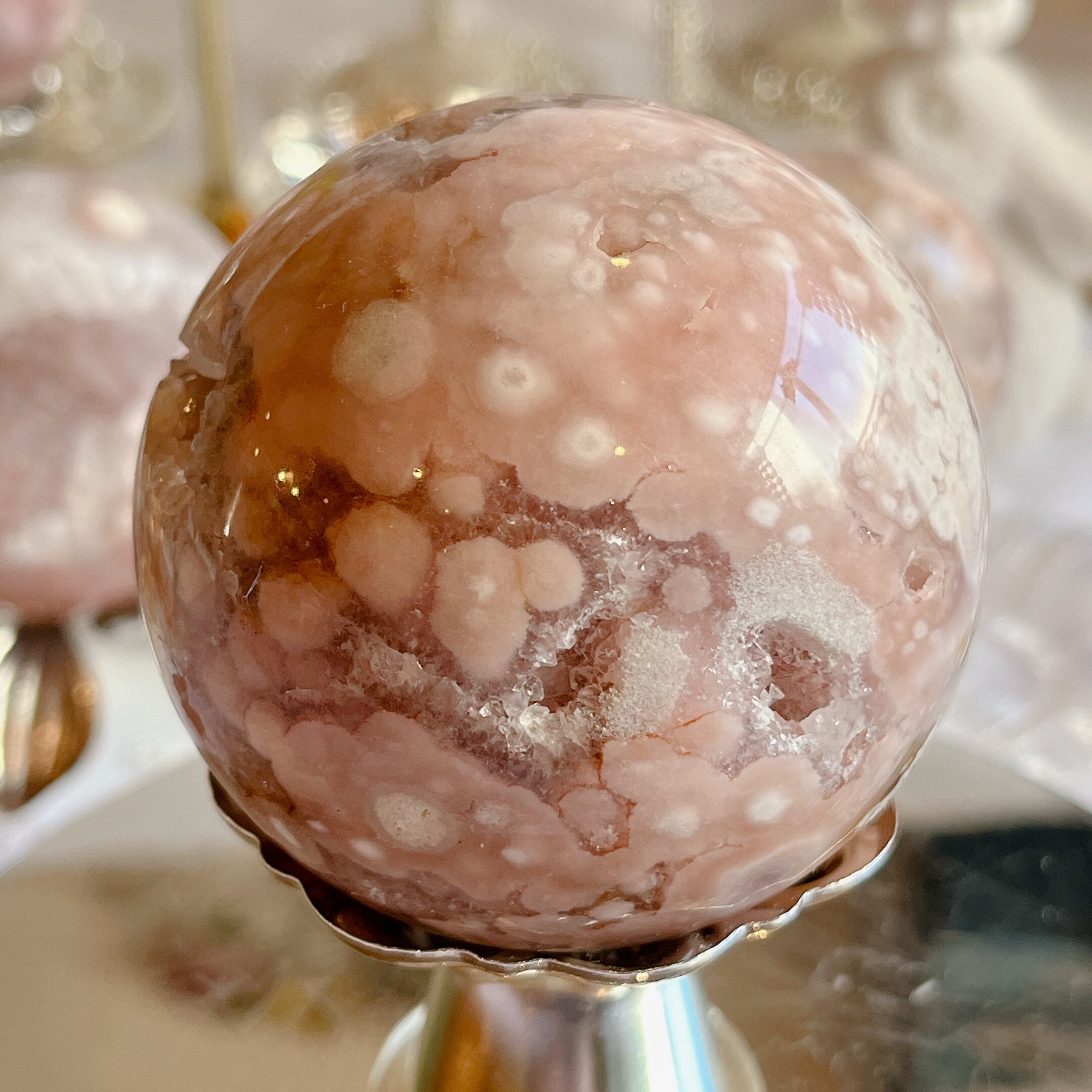 ピンクアメジスト共生のスフィアジオードは、美しいピンクの色合いと幾何学的な形状が特徴です。