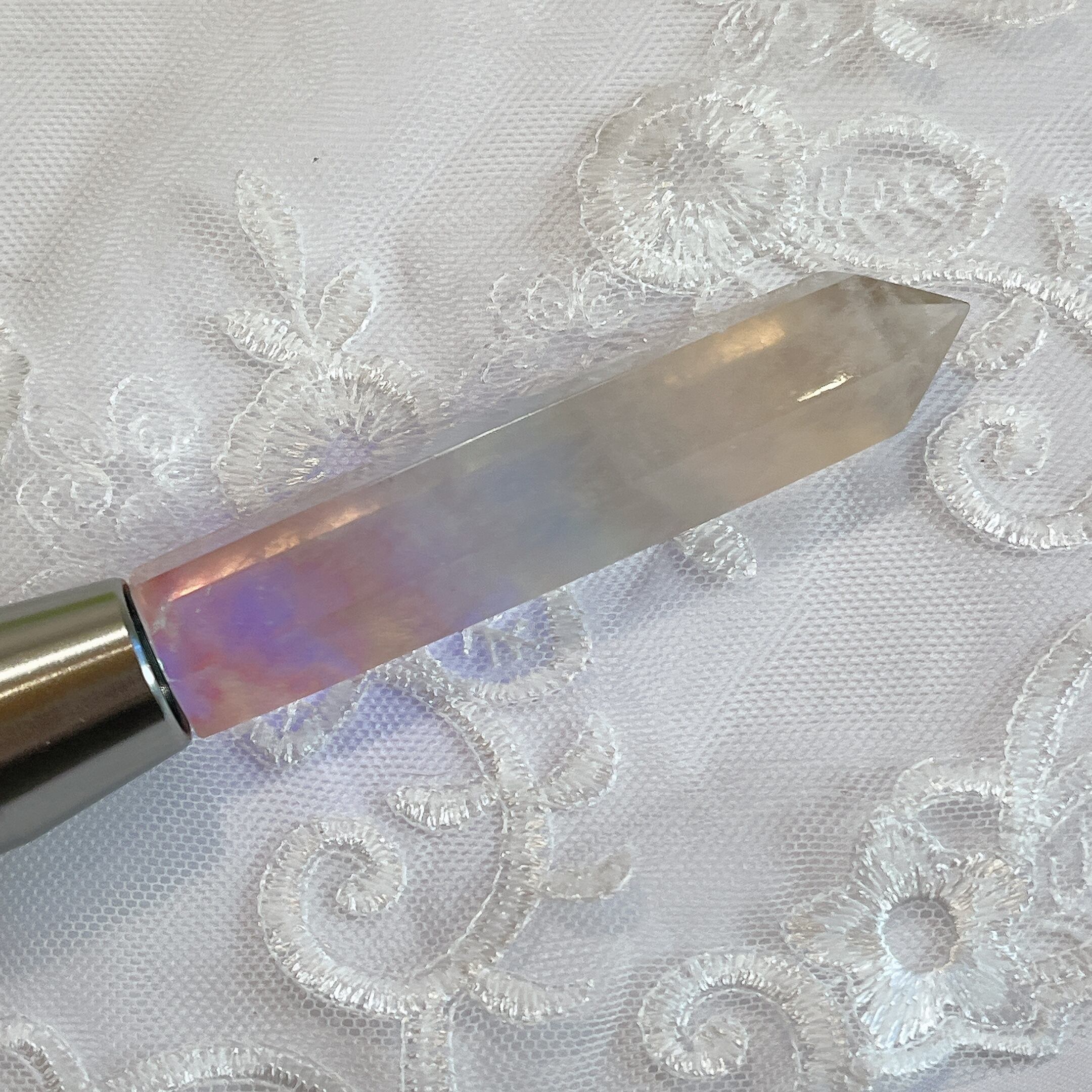 このキャンディーフローライトの丁寧に磨き上げられた剣の形状は、特別感を演出します。