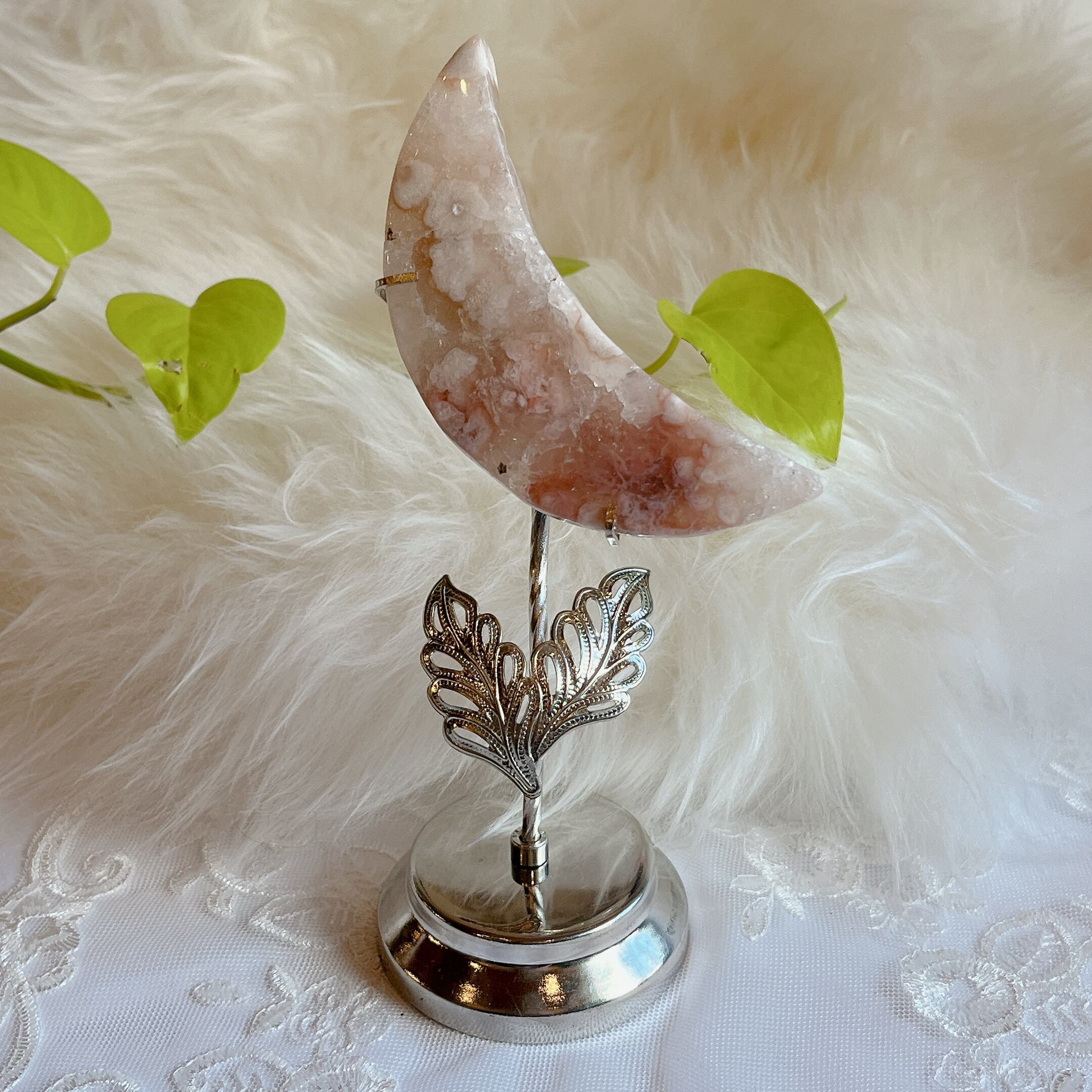 ピンクアメジスト★瑪瑙★共生★月★ムーン★台座付★パワーストーン★天然石★置物