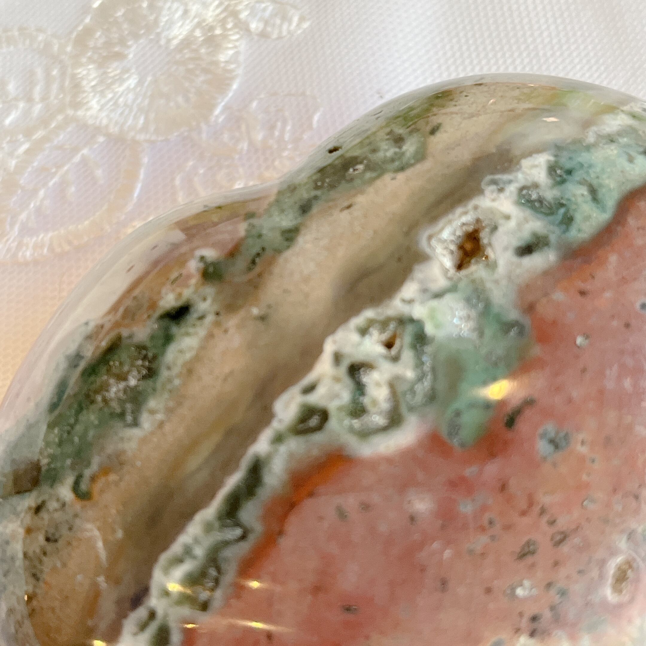 オーシャンジャスパー★グリーン×ホワイト×ベージュ×ピンクレッド★ハート★インテリア★置物★パワーストーン★天然石