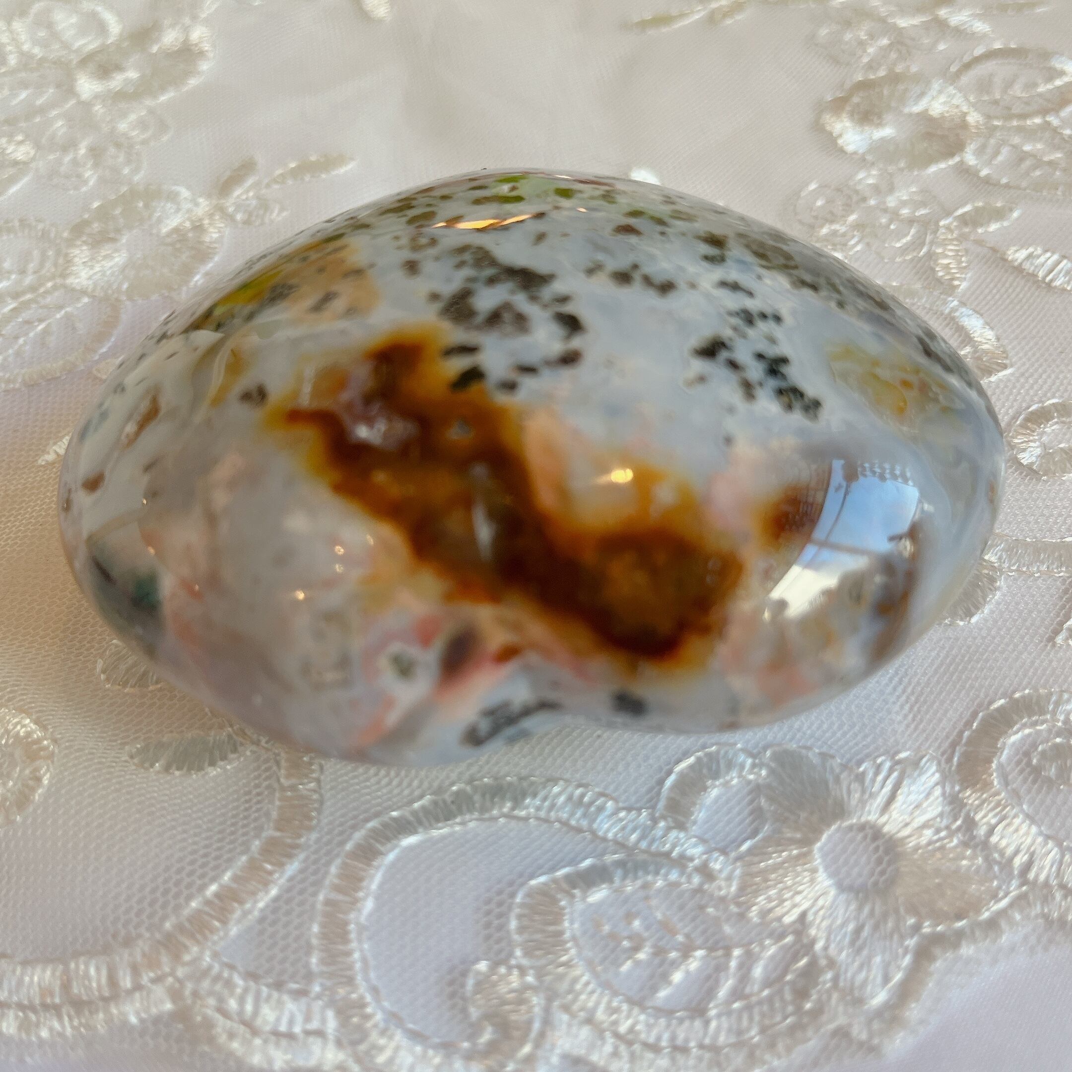 オーシャンジャスパー★グリーン×ホワイト×ベージュ×ブルー★ハート★インテリア★置物★パワーストーン★天然石