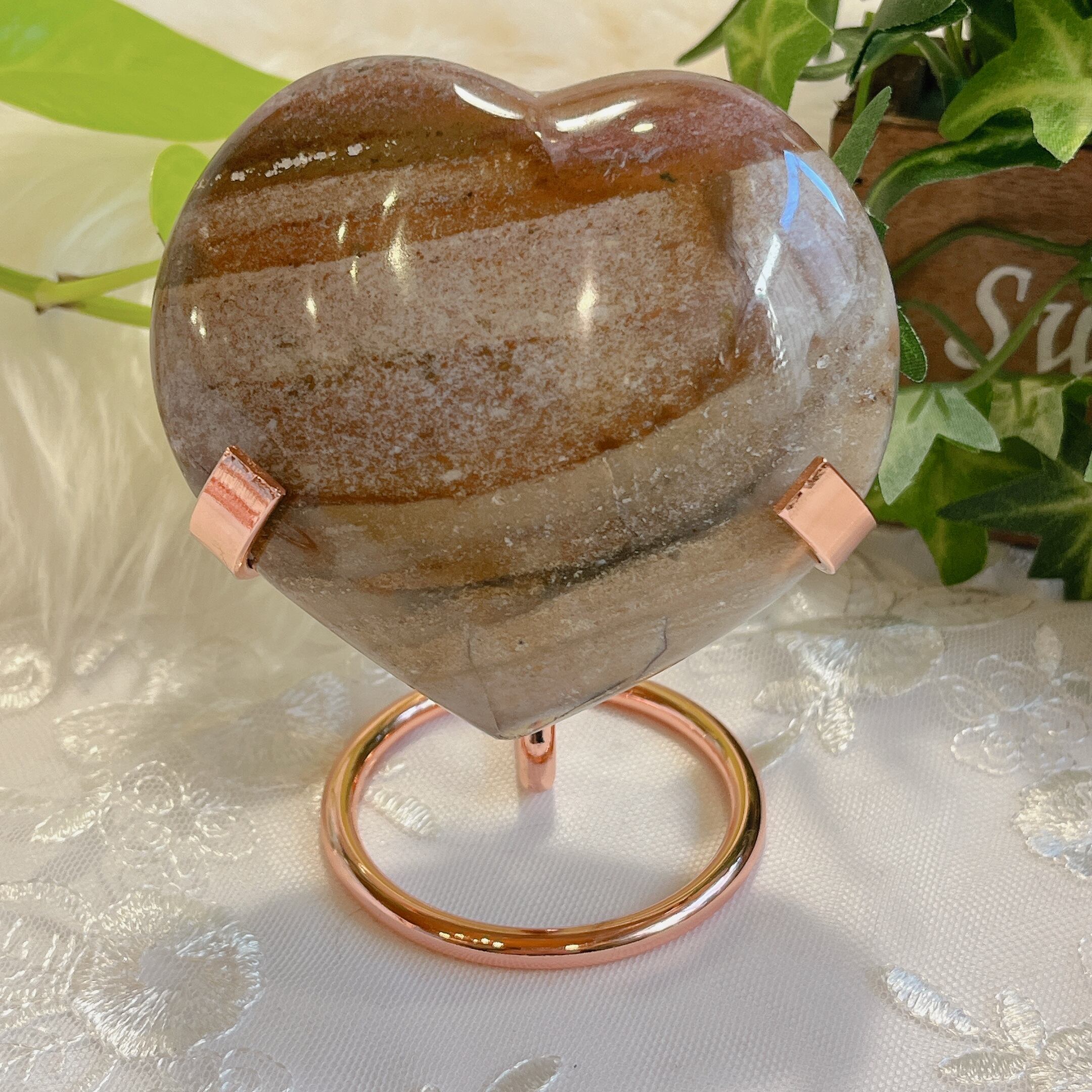 オーシャンジャスパー★ハート★アースカラー★ブラウン×ベージュ★縞模様★置物★インテリア★パワーストーン★天然石